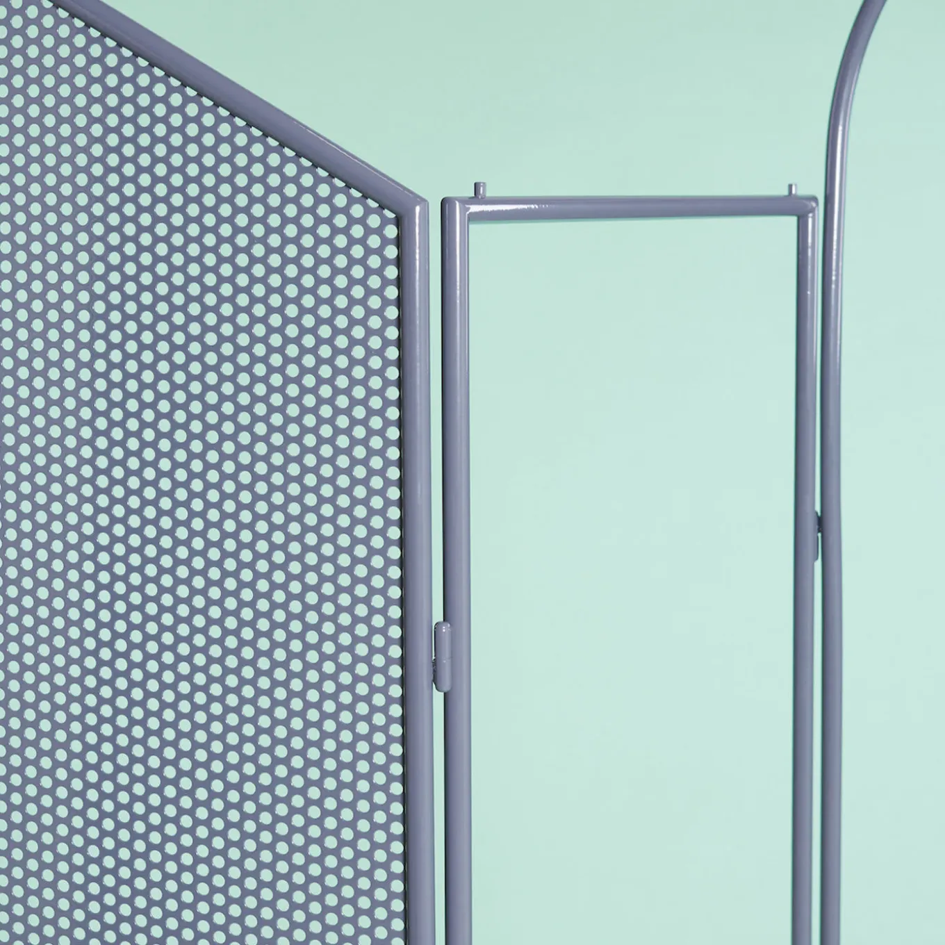 Endlessly modular, the Déjà-vu separè is the perfect accessory to any corner of public or domestic spaces. The rigorous and geometric lines of its modules (hanger, mirror, multi-shaped partition and lighting body) combine the intrinsic retrò meaning in this object with a contemporary aesthetic.