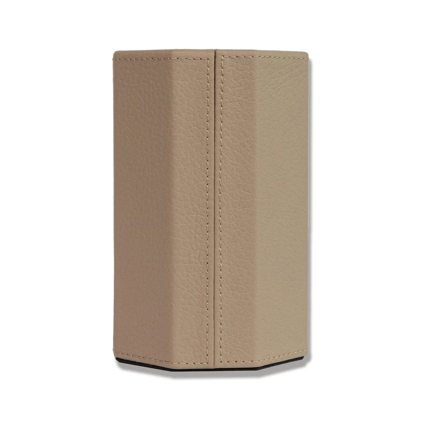 The wooden bottle holder is meticulously handcrafted and adorned with genuine fine and soft leather, featuring a microfiber internal lining for added protection. Available in the elegant tamarone beige shade, as well as fourteen other colors, this holder offers a stylish and practical solution for safely carrying and displaying bottles in various settings. Please contact the Concierge for more information.