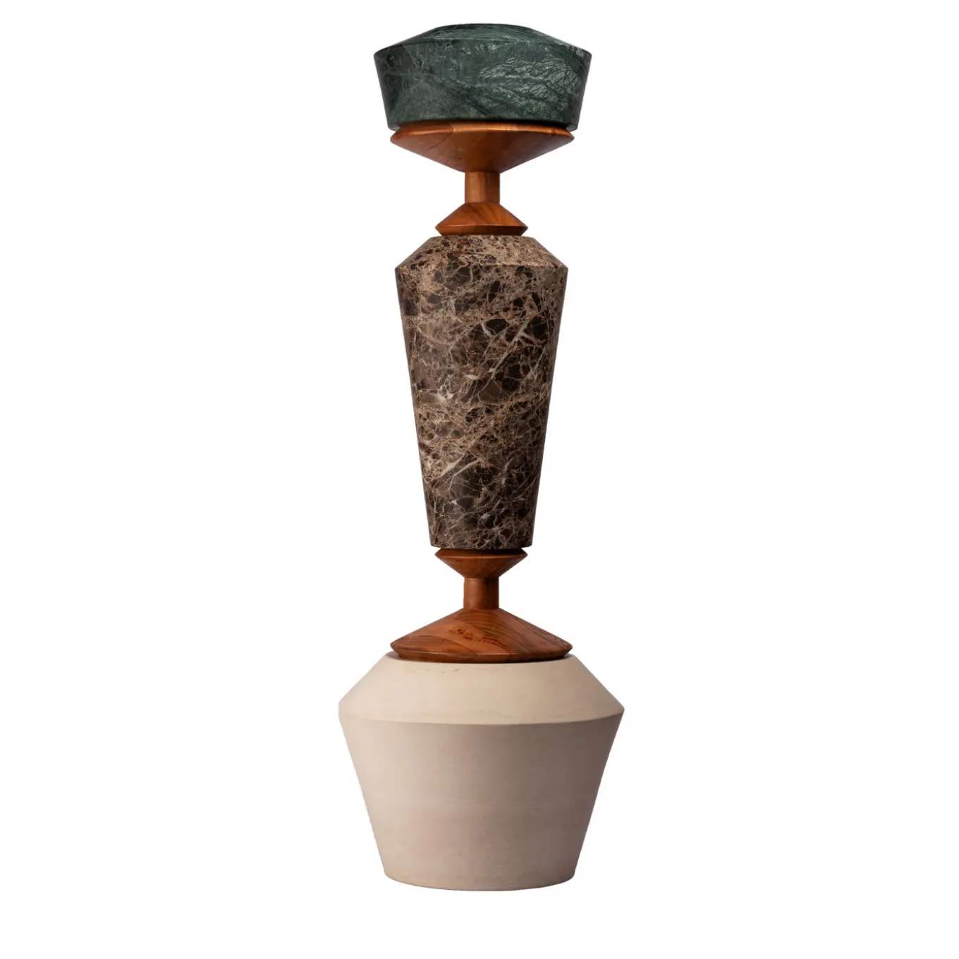 Two companies in the Neapolitan area focusing on production excellence, the search for materials, refined workmanship and infinite solutions obtained through the crossing of paths. Destini Incrociati is a collection of stunning and unique objects. Crafted in Trani Biancone, Alicante Red, Guatemala Green, Siena Yellow and Emperador marble varieties, the items feature elements of cherry wood.