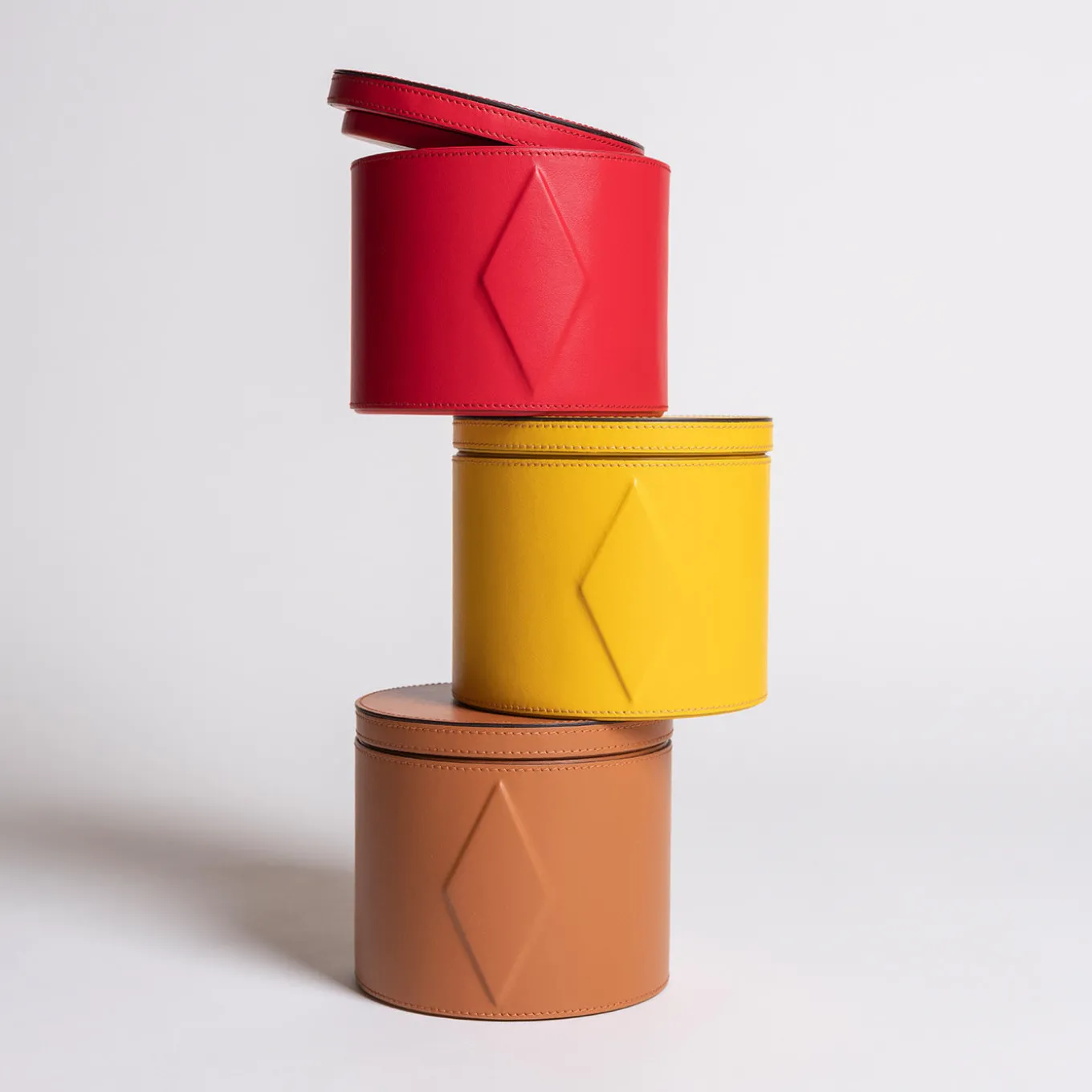Box entirely lined in leather with an embossed geometric motif, Luhdo’s leitmotif. An object for oneself or an exclusive gift in which to store one’s own objects or as a furnishing accessory.