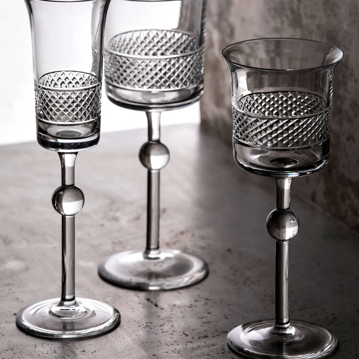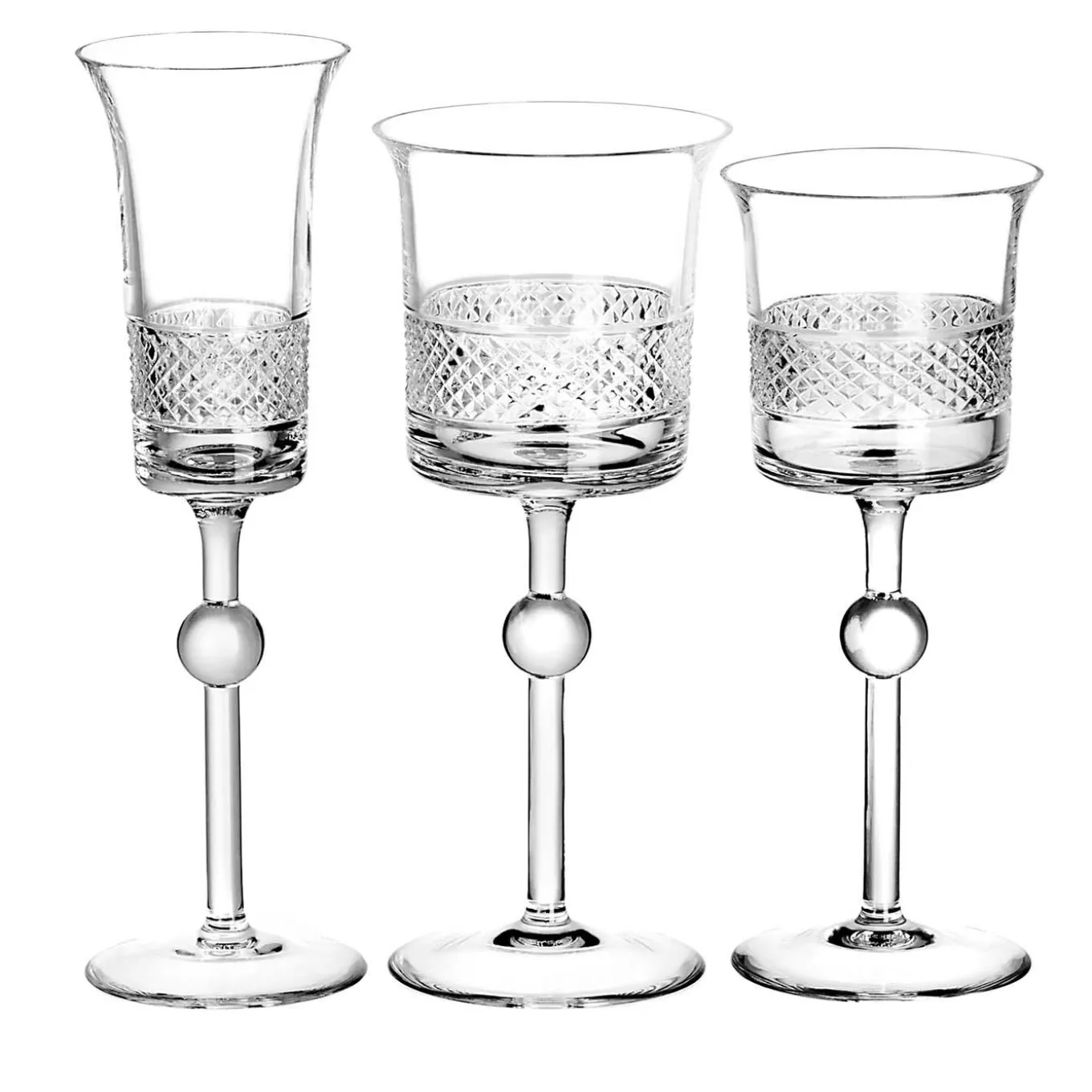 This exquisite set of two champagne goblets is part of the Diamond collection, distinctive for a striking diamond-shaped decoration on the bowl. Timeless and sophisticated, this design from 2004 by Claire Le Sage expresses Arnolfo di Cambio’s harmonious balance of traditional and modern styles, superbly crafted of mouth-blown crystal by the hands of master glassmakers. This is a splendid way to celebrate a special occasion. Each piece is H227 mm and Ø62 mm, and has a capacity of 12 cl.