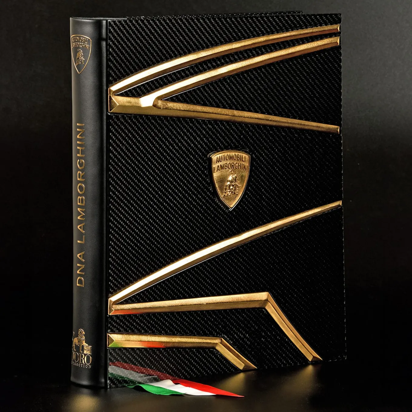 DNA Lamborghini II Edition is a collector’s book in which high technology and innovative materials are combined with ancient techniques and goldsmith’s work. This is the result of co-branding between D’ORO Collection and Automobili Lamborghini. DNA Lamborghini II Edition is the only official book in the world with carbon fiber covers made with the characteristic oblique pattern and inspired by the typical features of Lamborghini’s super sports cars.