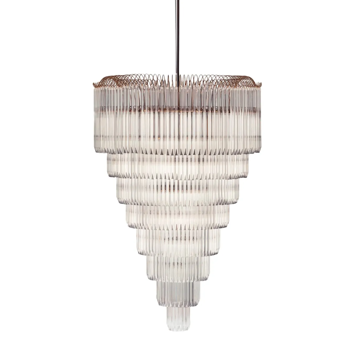 Doge is a chandelier in stainless steel and crystals, showcasing elegance and craftsmanship. The tiered design features cascading crystal rods, reminiscent of classic Venetian chandeliers, creating a striking visual effect. The high-quality crystals beautifully reflect light, casting a warm glow. With its refined opulence and timeless design, the Doge collection is perfect for luxurious interiors that demand sophistication and grandeur.