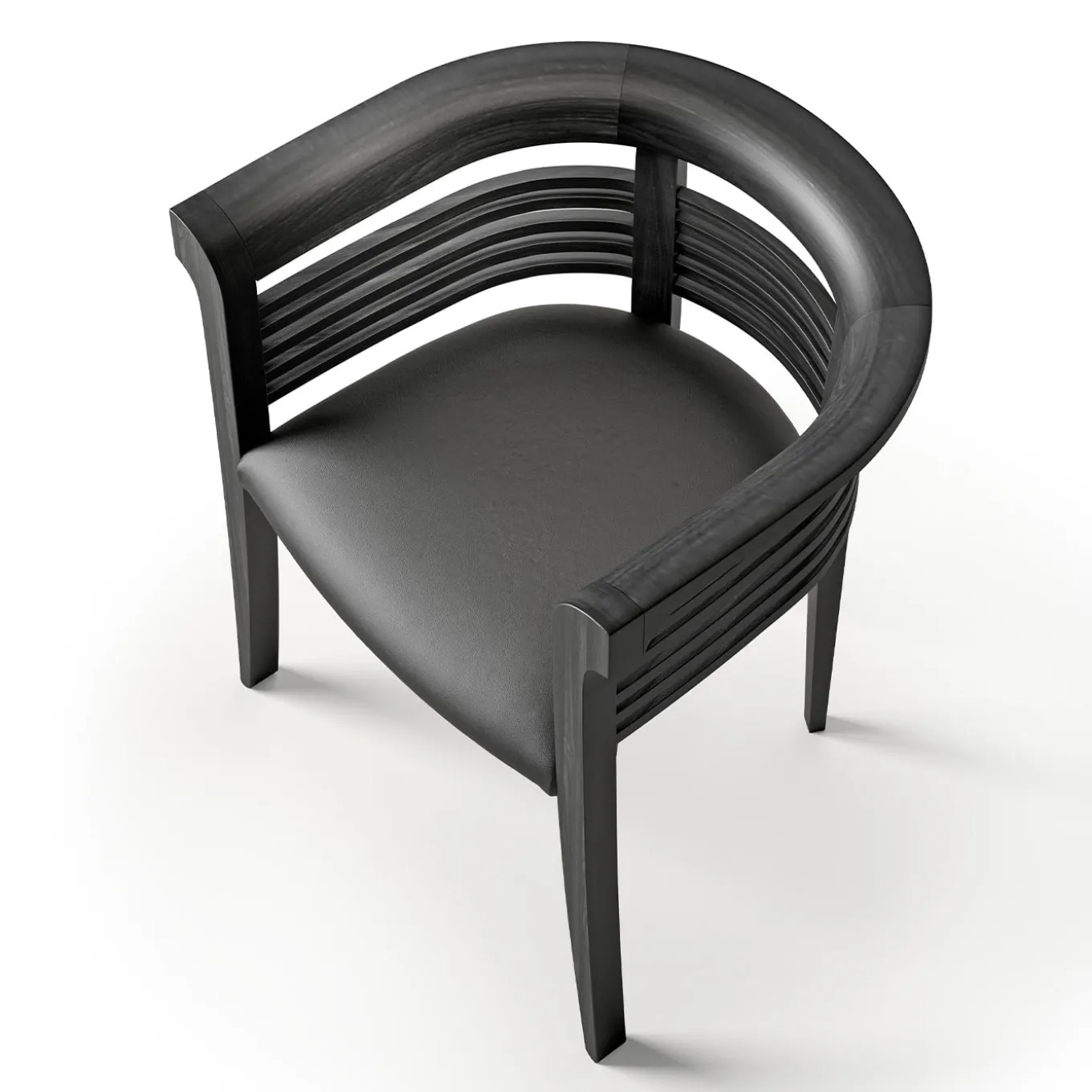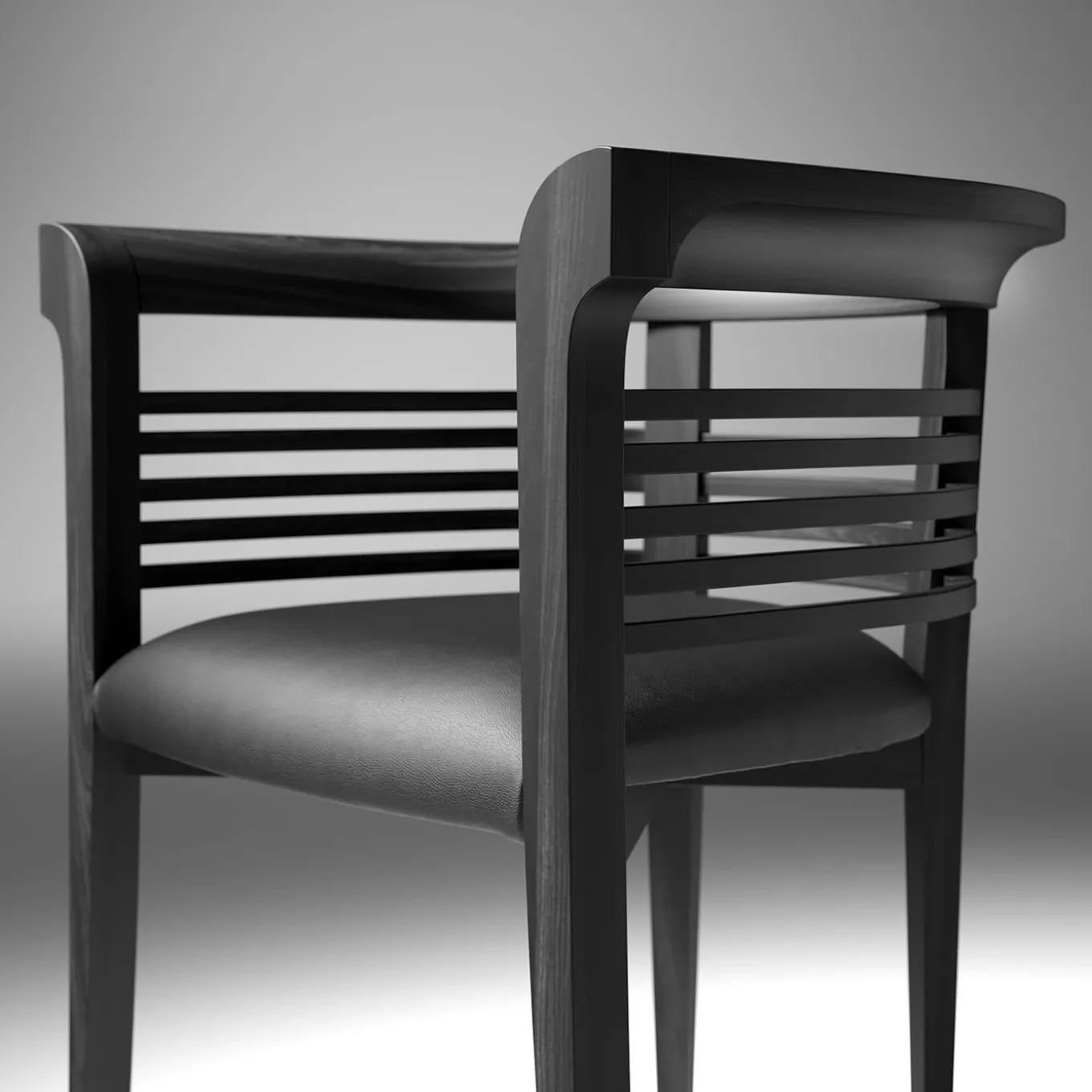 Echoing the atmosphere of Venice and its mystical Canal Grande, this chair in solid ash with a timelessly elegant black finish borrows the iron prow-head from gondolas and reinterprets it in a functional design solution. Slightly curved legs extend up to the backrest’s top profile, playing a crucial structural function while embracing the user in its reassuring and highly evocative embrace. Natural ash and Canaletto walnut are optional finishes available upon request to the Concierge.