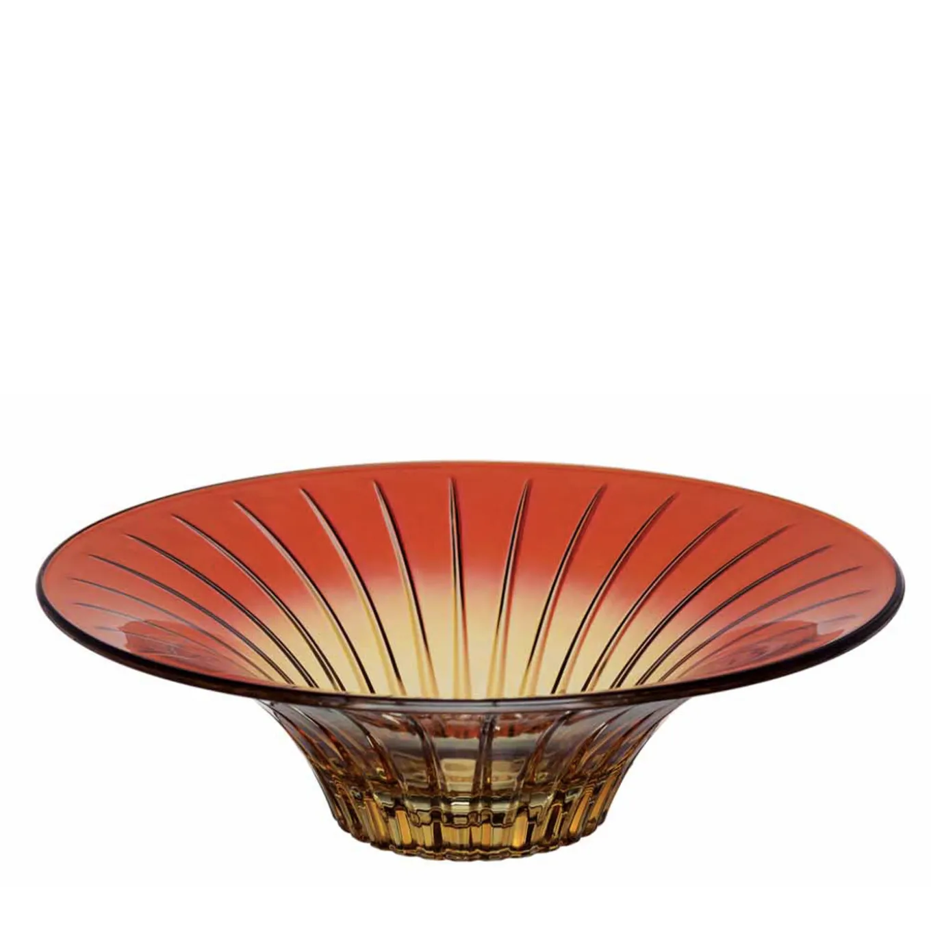 This centerpiece will be the center of attention on any table. The striking ombre effect of this piece fades from a deep orange coloration around its edges into a soft yellow hue descending into its interior.