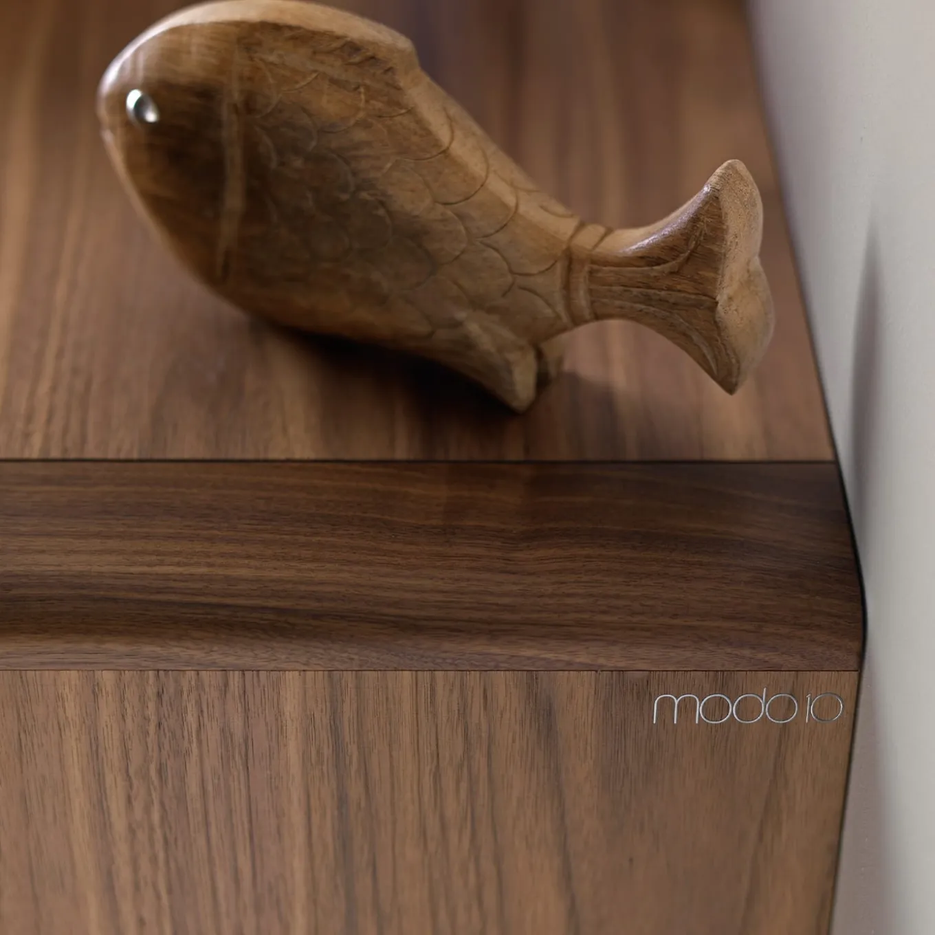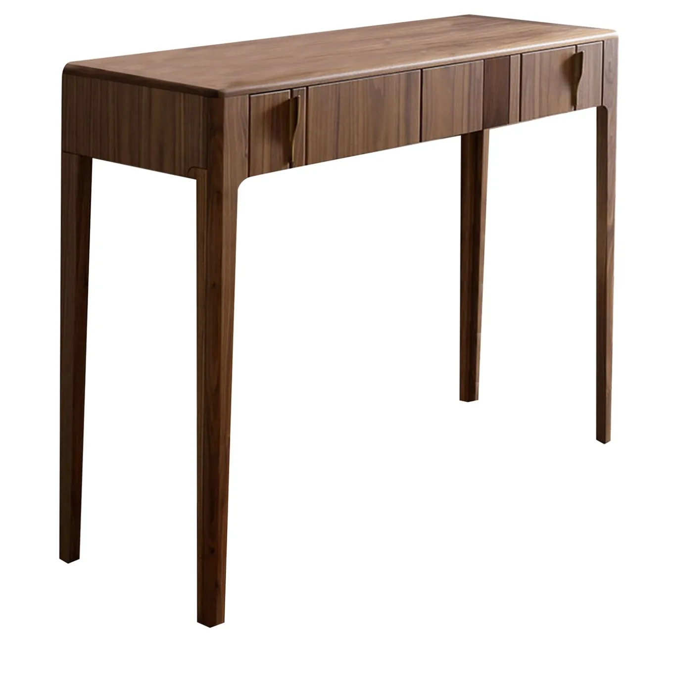 Console with 1 drawer, ribbed slat – Havana finish – Bronze handles