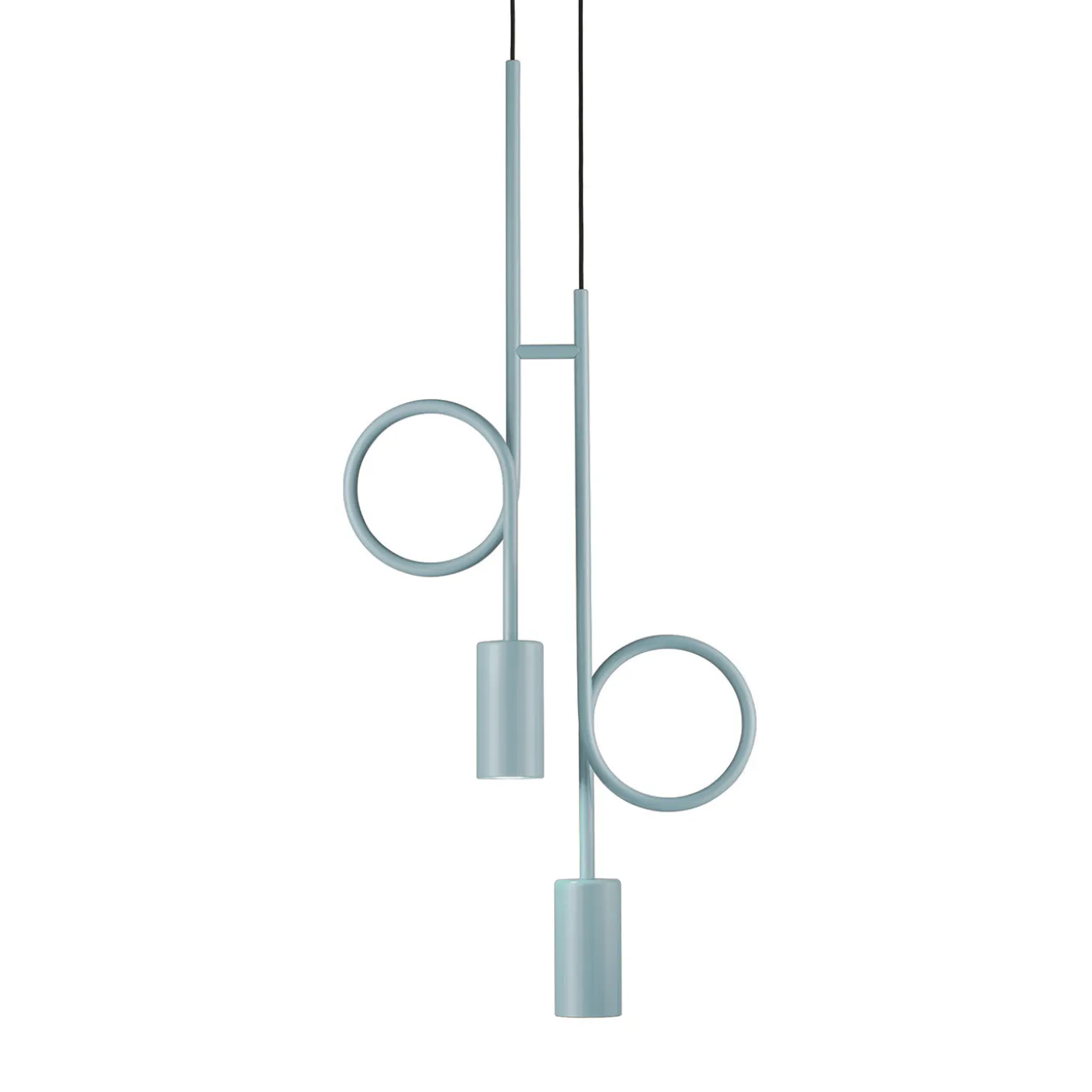 The Dopamine S2 chandelier features a design with hand-curved elements shaped on molds and silver soldering. Some parts are lathed and milled. Equipped with GU10 bulbs directed downwards for focused lighting, the chandelier combines artisanal craftsmanship with modern form.