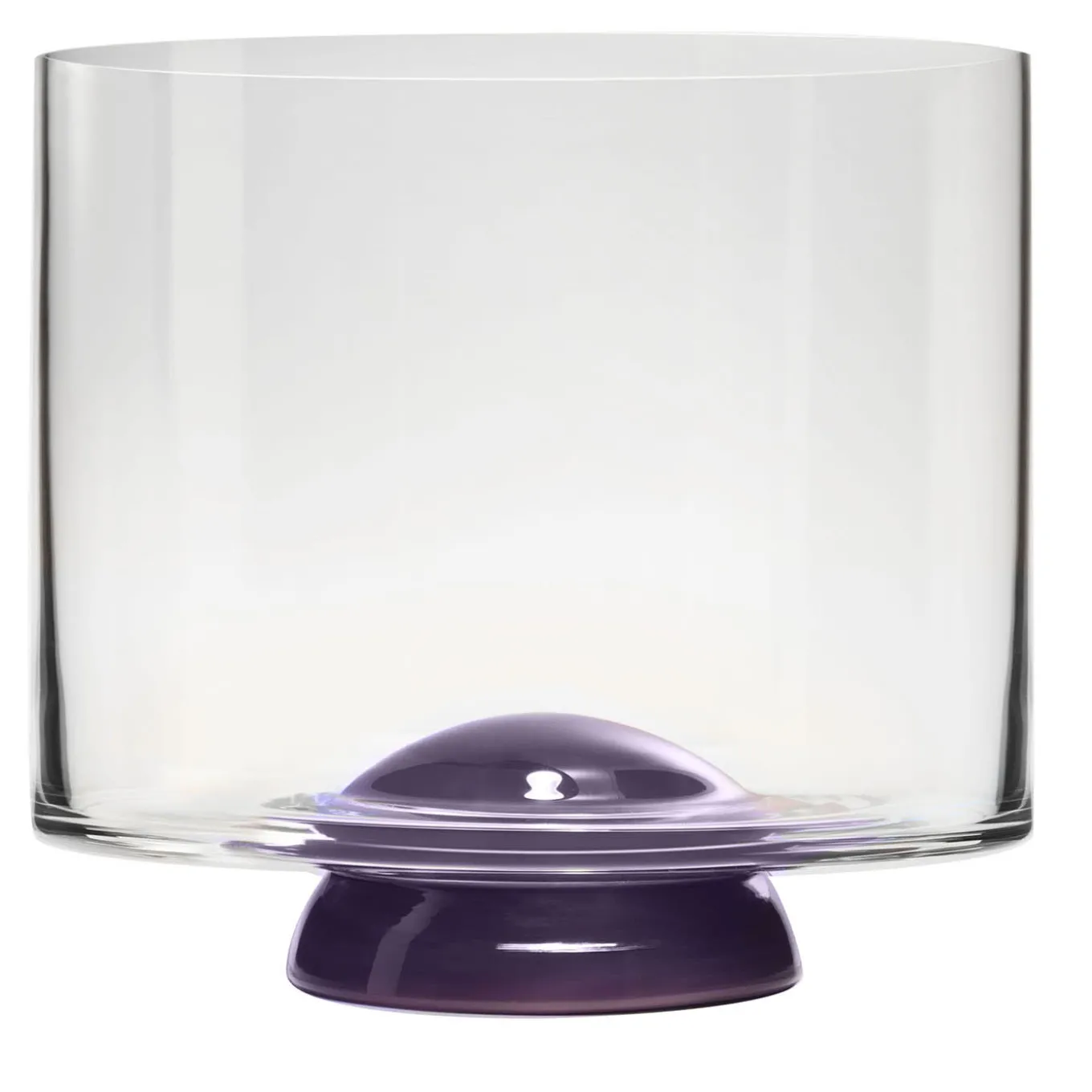 Playfully inspired by dots – eloquently stated by the collection’s name – this Murano glass whisky glass artfully combines geometric volumes for a truly glamorous look. The handmade domed base – partially protruding within the glass for an intriguing sculptural feel – is offered in a refined blueberry tone that enlivens the perfect clearness of the cylindrical body.