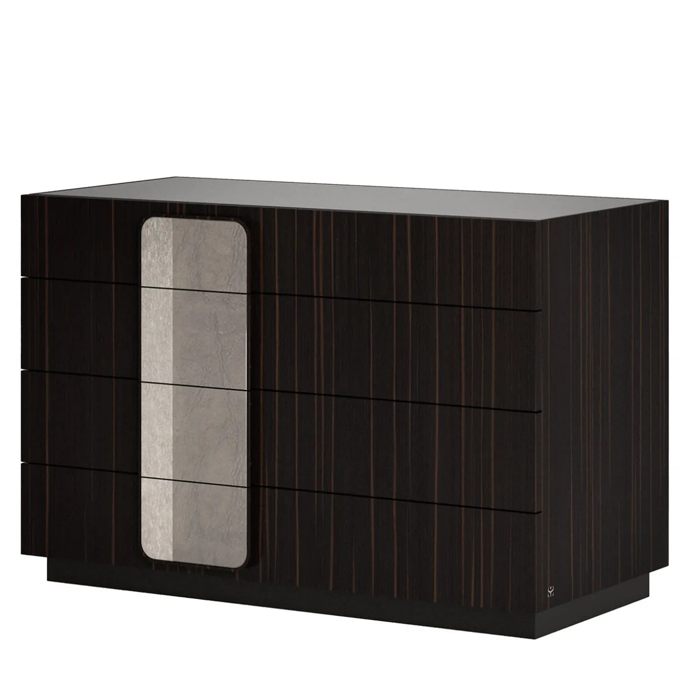 Imbuing a contemporary bedroom decor with unprecedented character, the Dover Dresser boasts a minimalist design distinguished by precious details, Crafted of ebony enriched with champagne glass sheet details, it is rich in textile and visual contrasts. The large and capacious drawers are internally covered with microfiber. Please inquire with the Concierge for further details.
