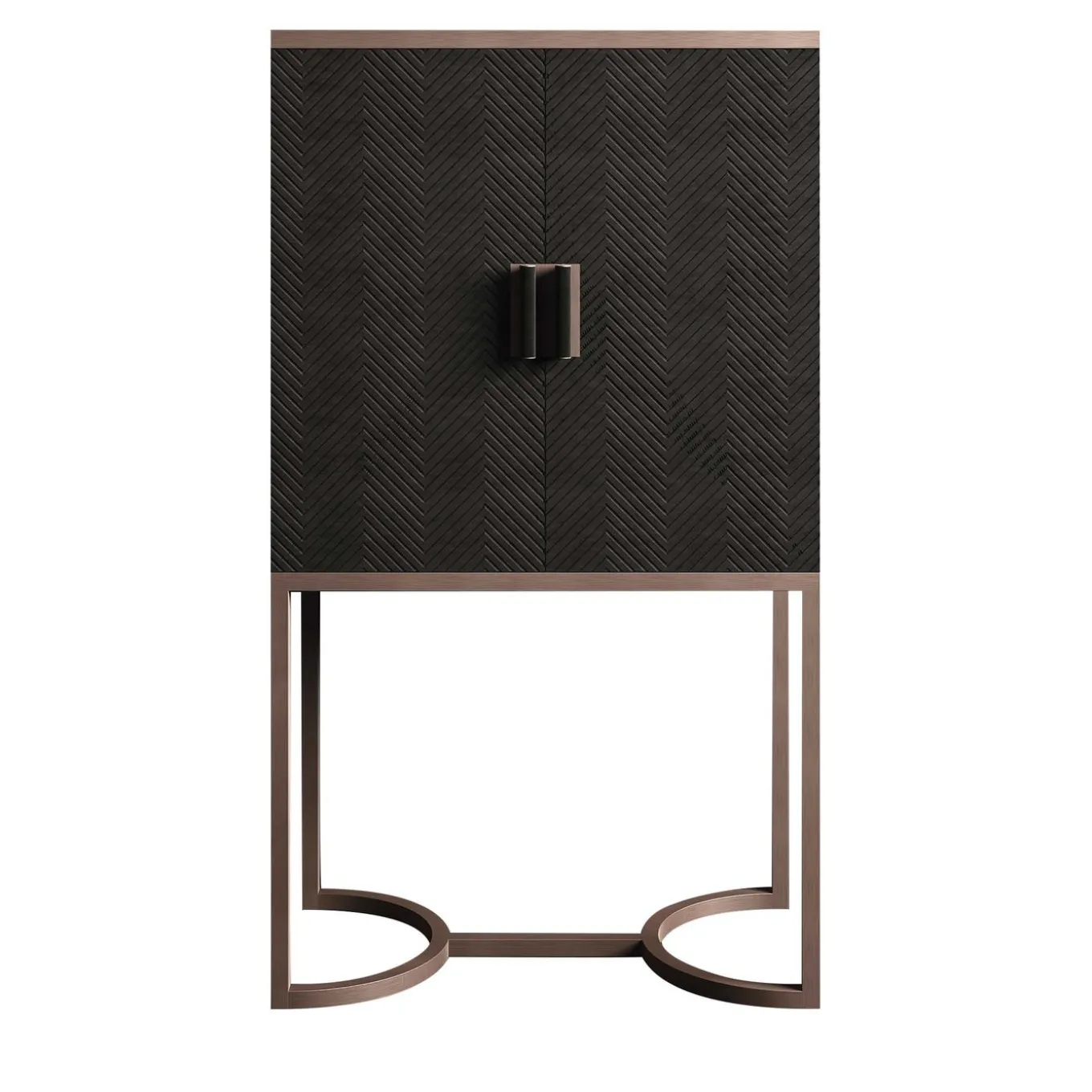 The Dragonfly Bar Cabinet is elegant and stylish in design and features unique velvet lacquered doors with an engraved design. Perfect for storing your drinks of choice and exclusive glassware, the cabinet sits on a uniquely formed metal base for added elegance.