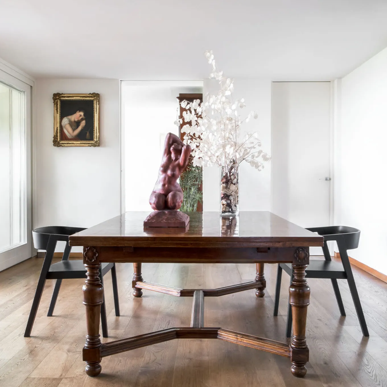 Crafted with precision CNC technology, this armchair in black ash by Lorenz+Kaz merges classic and contemporary design. The steam-bent solid ash backrest highlights its sophisticated profile. The black lacquered frame and wooden seat offer a composed seating experience, with options in plush leather or fabric to suit personal preferences. Ideal for both private spaces and upscale dining environments, this armchair epitomizes modern elegance. Please contact the Concierge for more details.