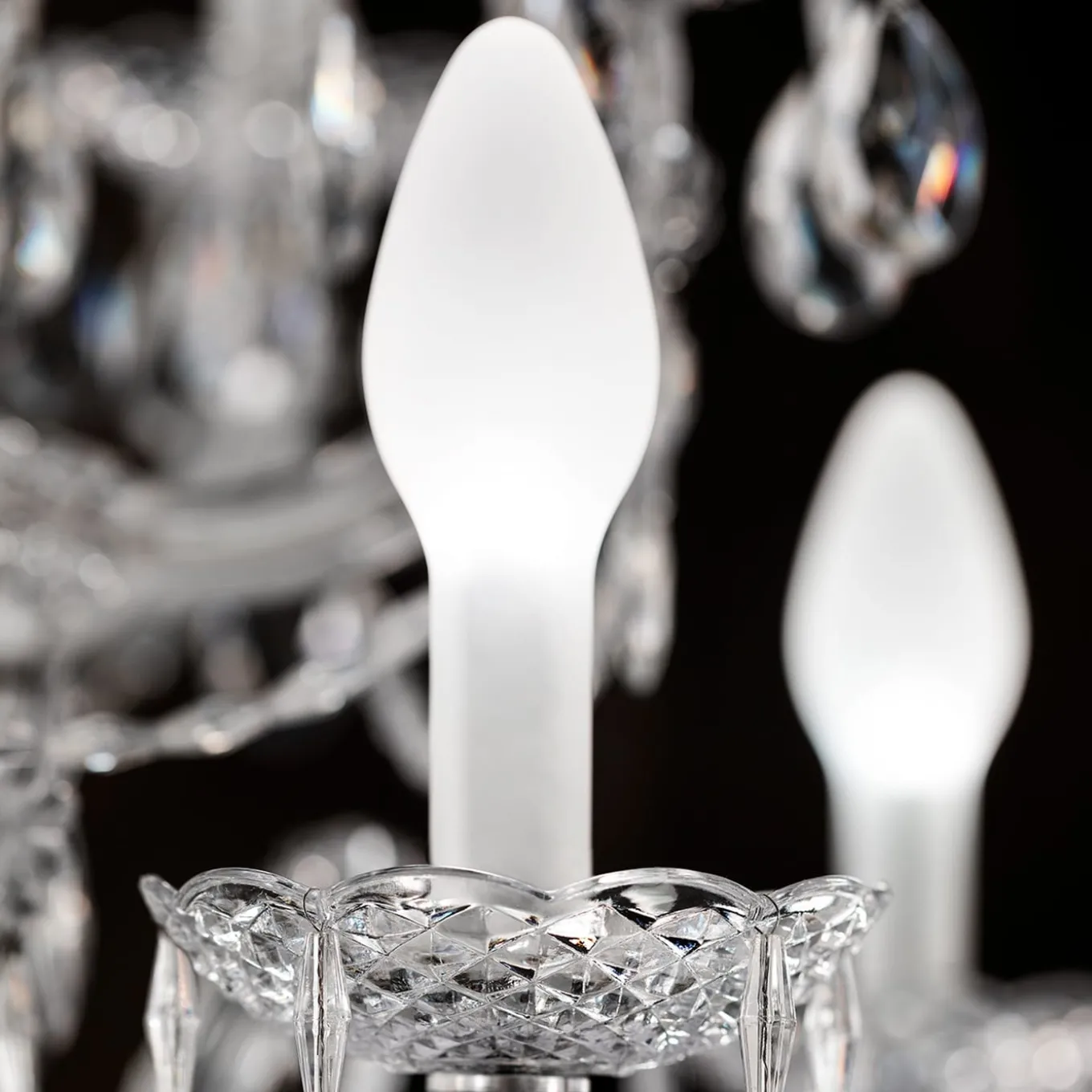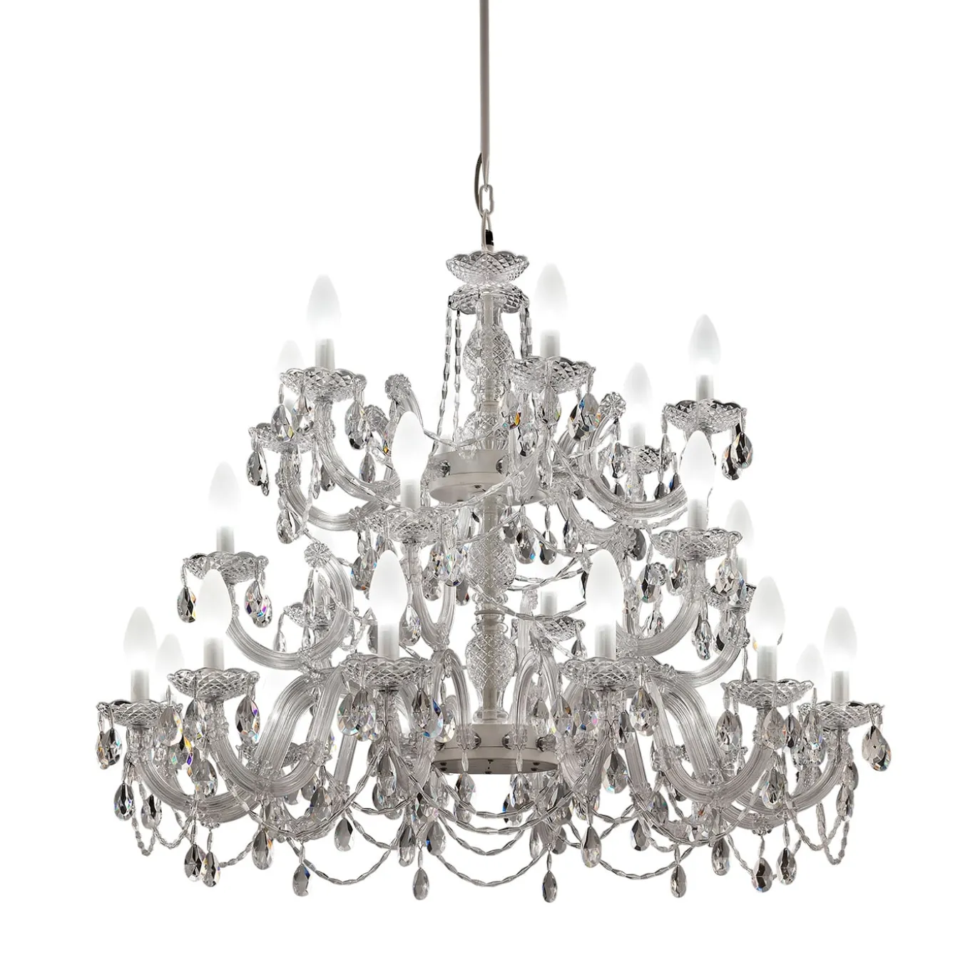 Drylight is a chandelier with 24 lights, a unique outdoor pendant inspired by classic Venetian chandeliers, creating a one-of-a-kind lighting piece. The frame of the pendants is made of polycarbonate with transparent crystal details, ensuring both durability and style. It is available in a white LED version or with the RGB_WiL system for customizable lighting. Bulbs not included. Please contact the Concierge for more information.