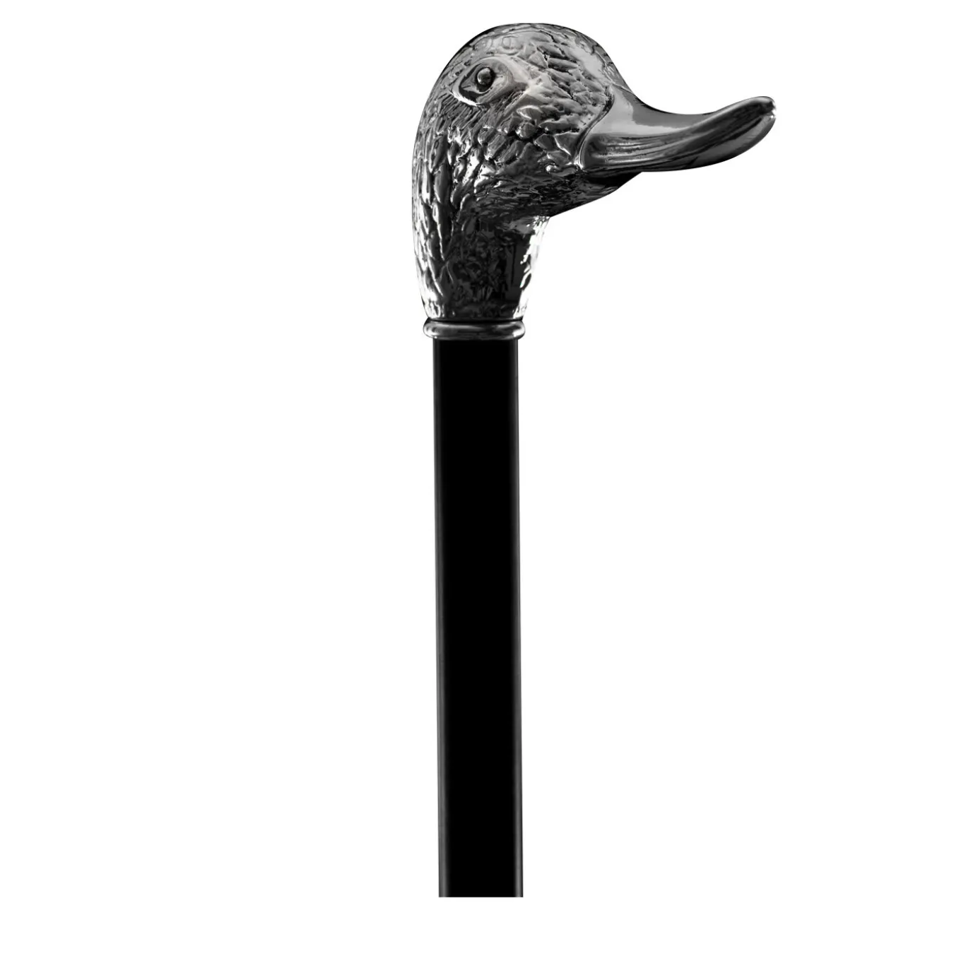 Characterized by an elegant and classic design, this stick features a metal handle richly decorated with elegant patterns embossed on the surface. The conical shaft of this sophisticated accessory is crafted in gloss black beech wood and has a silver-plated brass tip with protective rubber end. This is a collectible item, not to be used for walking.