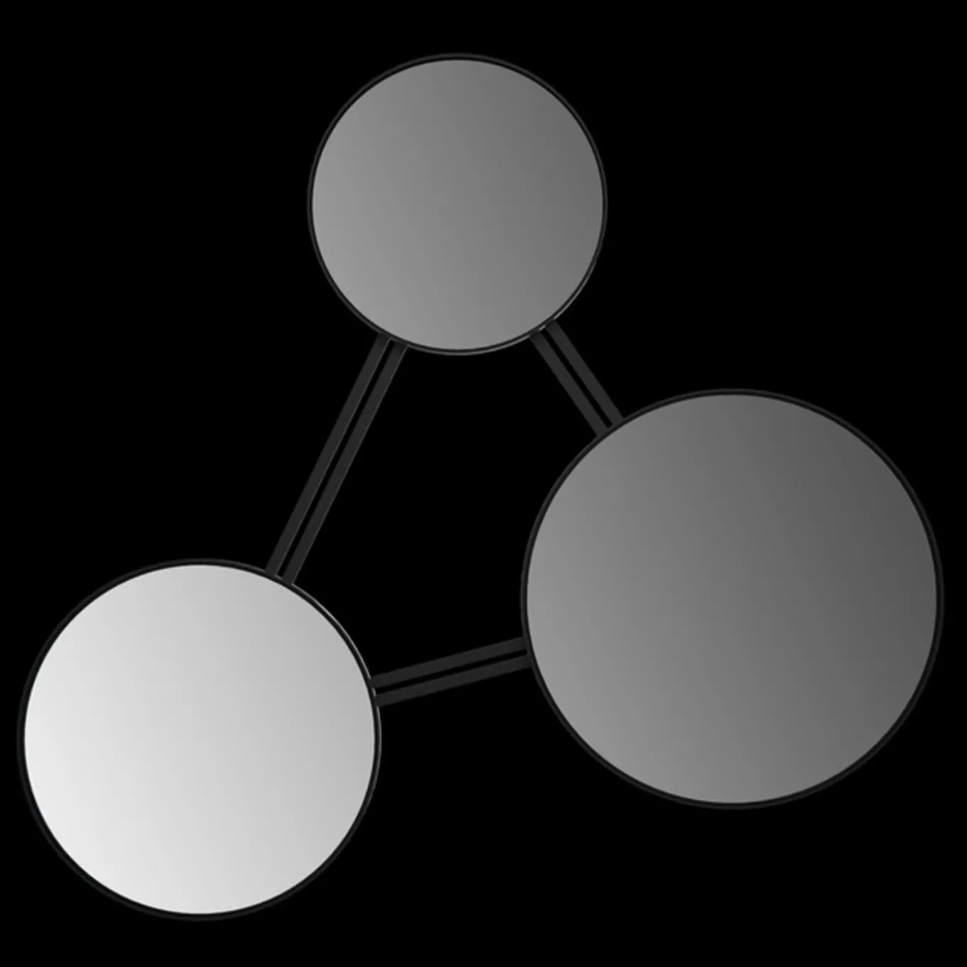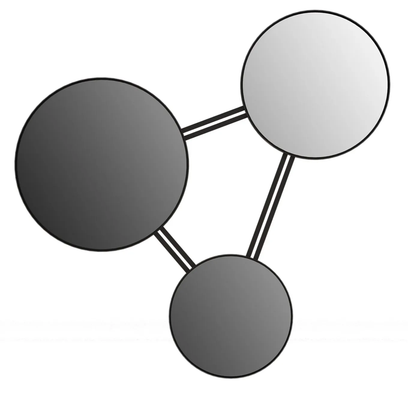 Modular wall mirror with black paint structure. The rails can be adjusted to give the mirror multiple forms.