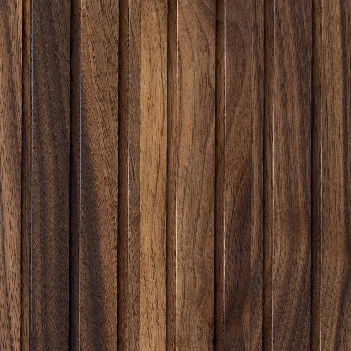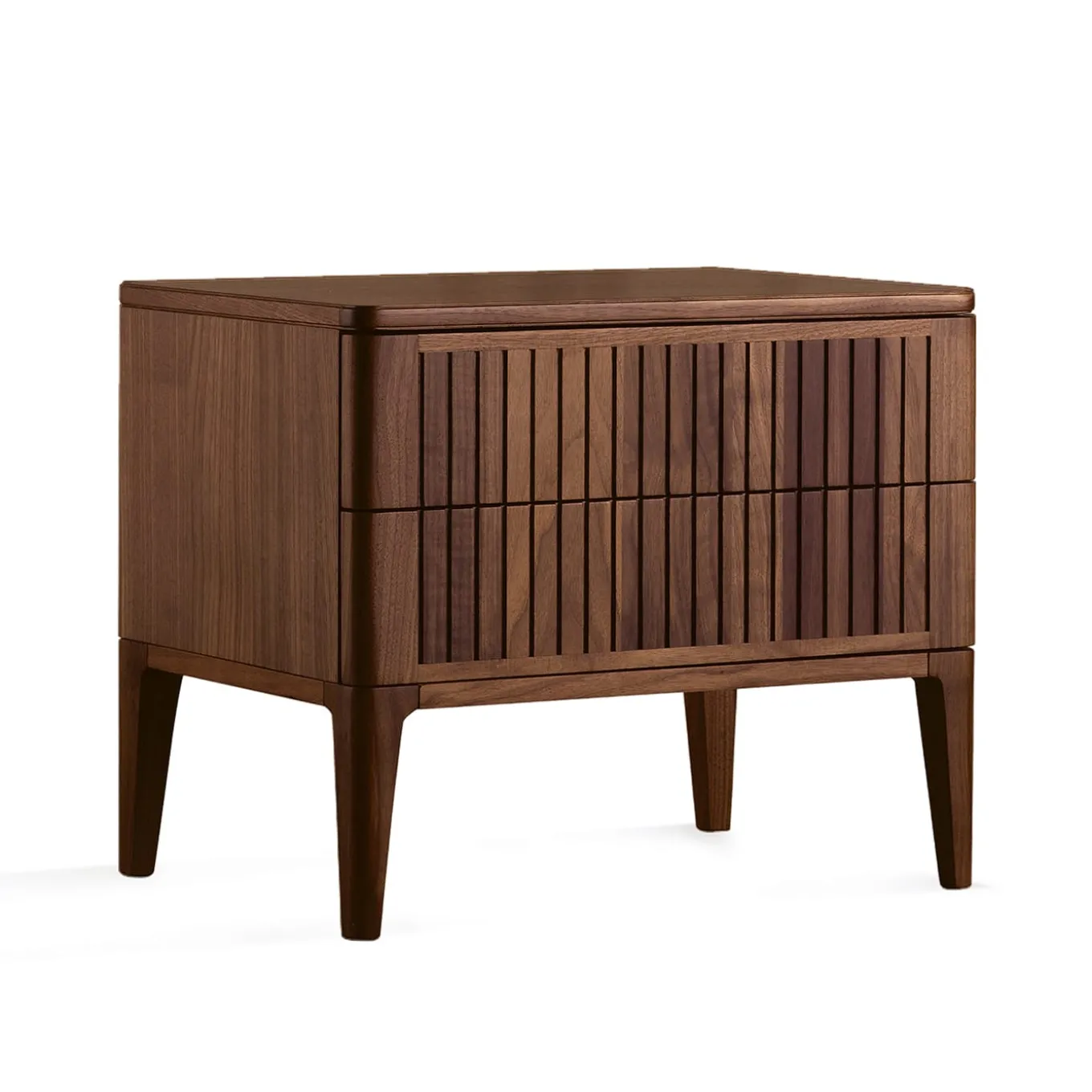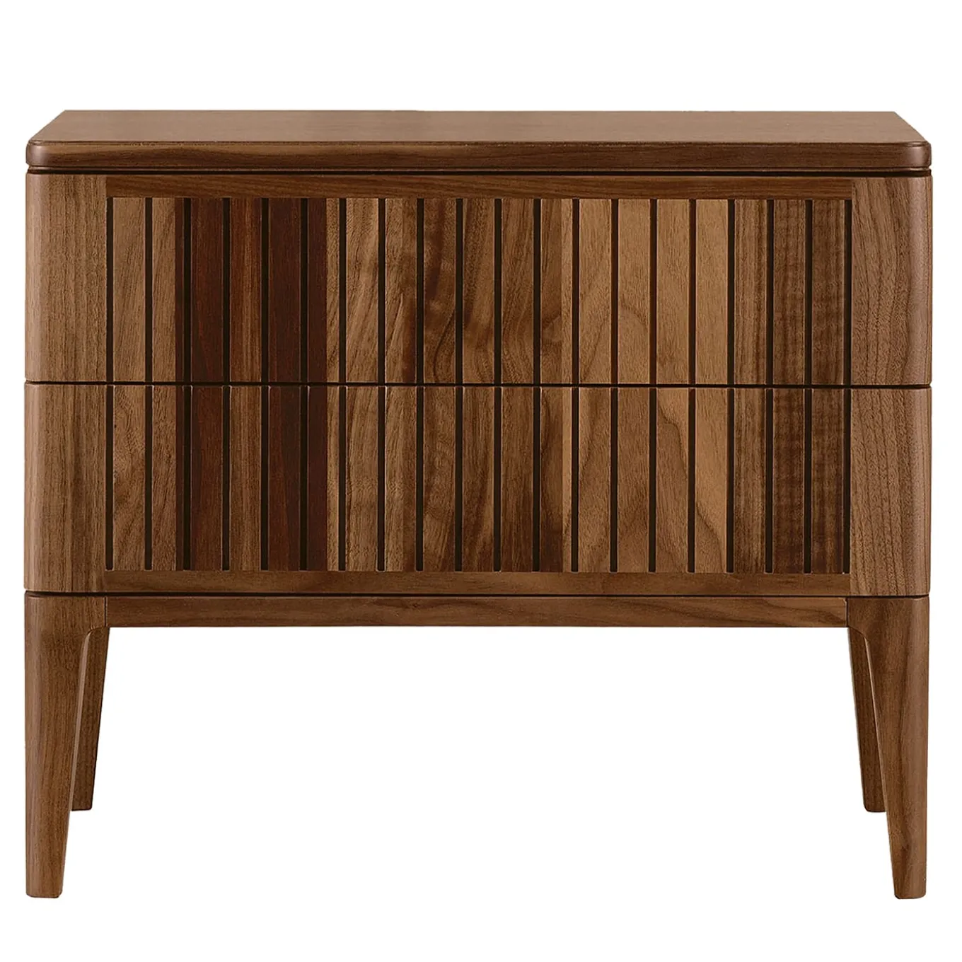 The Eleva solid wood bedside tables combine refined Italian design and skilled craftsmanship. The front doors, made of premium solid walnut with acrylic finish, create an intriguing contrast between light and shadow thanks to a linear style.