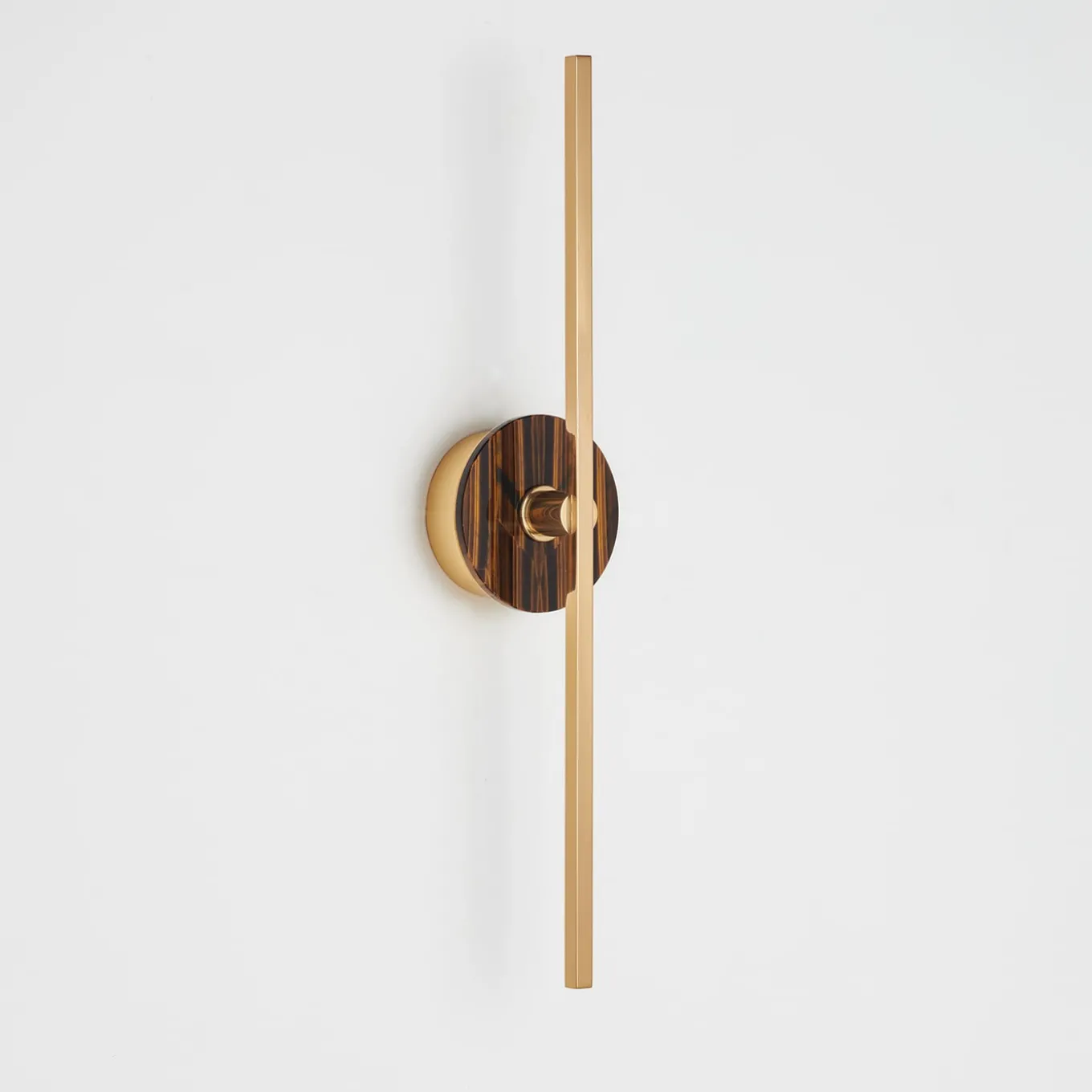 The Elite Stick Wall Sconce harmoniously merges sleek minimalism with modern functionality. Featuring slender polished brass profiles, it elegantly showcases the warmth and diffusion of LED technology, providing a cozy illumination. The tiger Eye serves as a striking decorative element, introducing a vibrant pop of color and a sense of solidity to the design. Each piece is handmade in Italy, ensuring a unique craftsmanship that enhances any contemporary space.