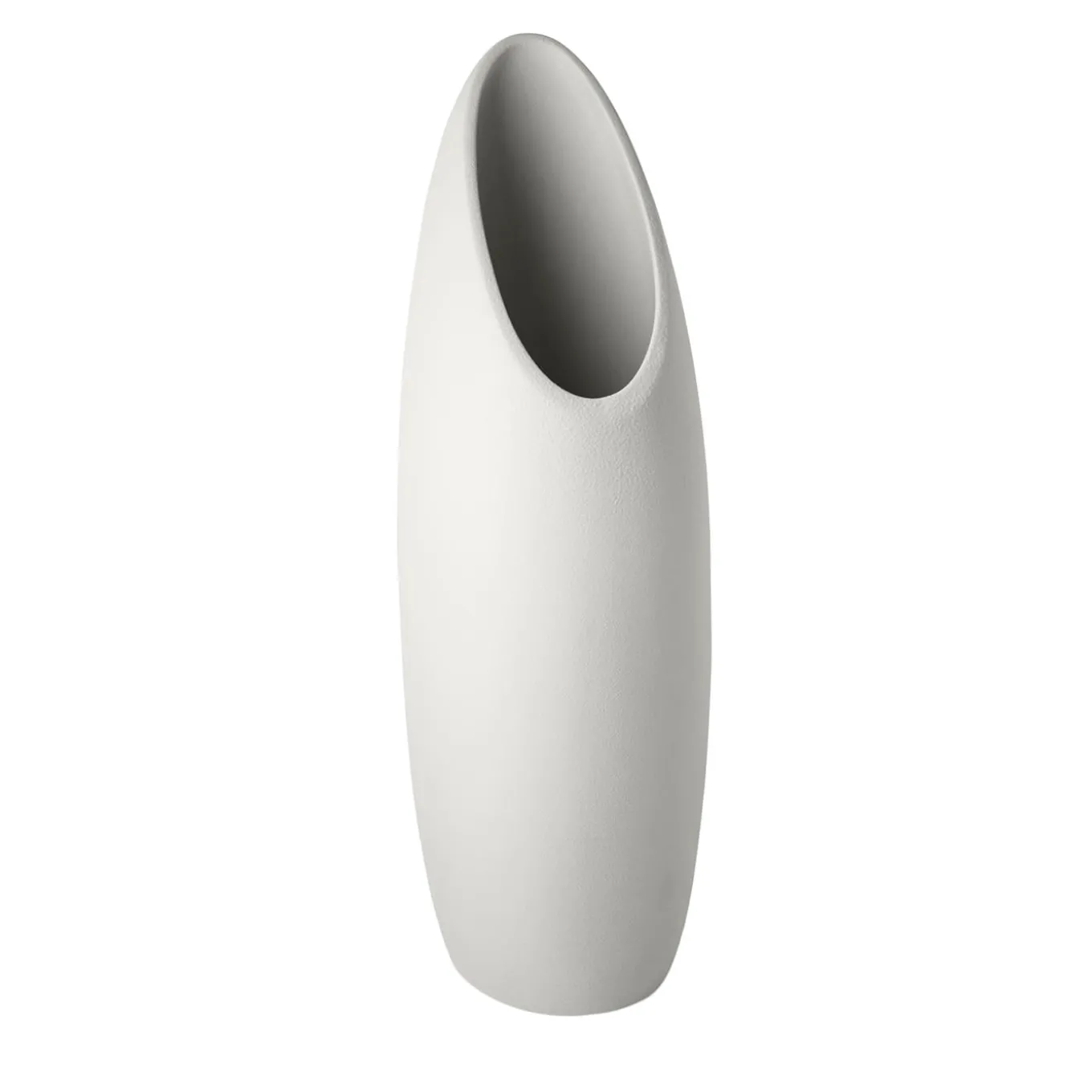 The Ellipse Umbrella Stand White porcelain stoneware Vase presents a striking fusion of form and functionality, characterized by its unique elliptical design. The upper opening, elegantly crafted with a second elliptical cut, enhances its artistic appeal while ensuring stability and ease of use. This versatile piece not only serves as a sophisticated umbrella holder but also doubles as a stunning vessel for long-stemmed cut flowers or grand floral arrangements. Ideal for elevating entryways or living spaces, the stand seamlessly integrates with various décor styles, making it a statement piece in any home.