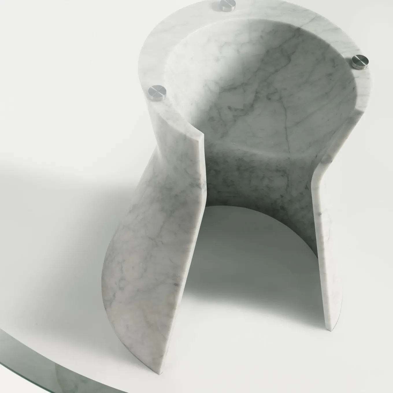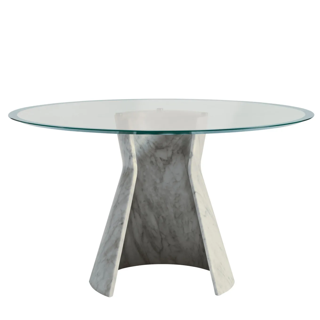 Designed by Gritti Rollo, this stunning table is a superb example of fine craftsmanship. Its round crystal top gives an unobstructed view of its striking base, crafted of one single piece of Carrara marble that was carved to create the curl that gives the piece its name. Adding a sense of solidity on one side and lightness on the other, this base is dynamic and sophisticated, a striking visual accent on any interior. The top is meaures 130 cm and the base is 65 cm. Other kinds of marble are also available, please ask the Concierge for details.