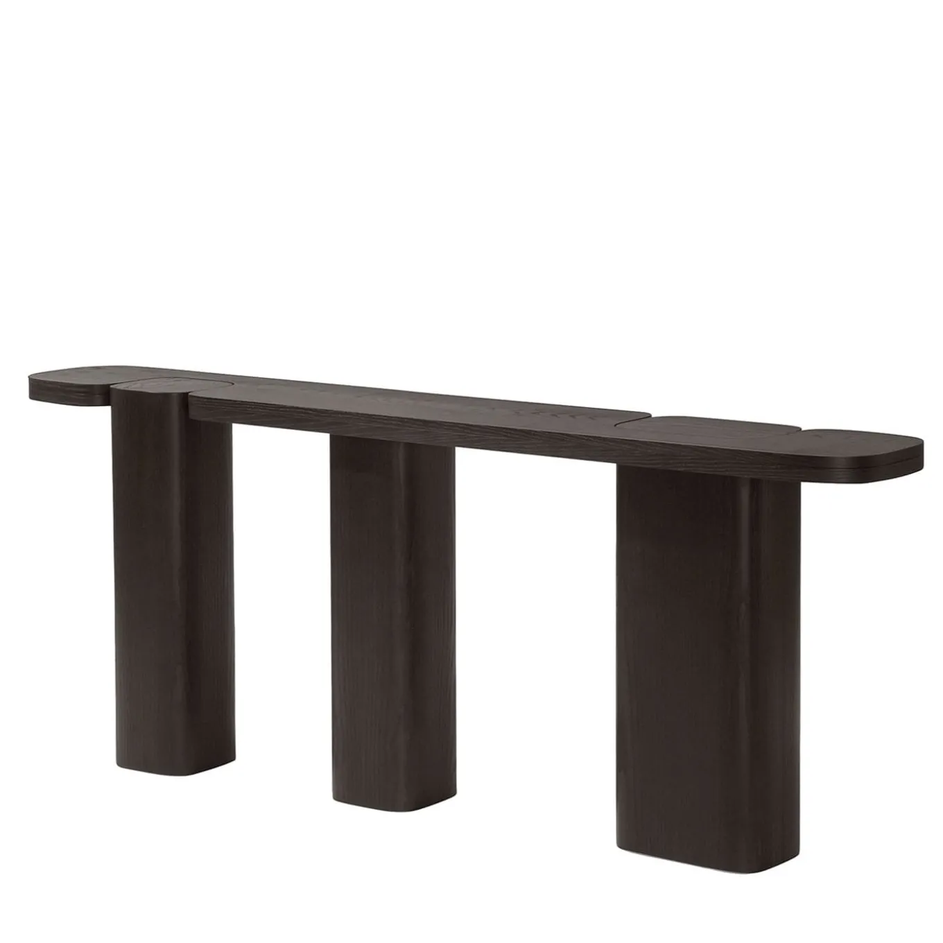 The Erice C Console embodies a sculptural elegance ideal for enhancing interior spaces. This versatile console table, with its generous length yet minimal depth, excels in various settings—from living rooms to bedrooms, and particularly in entrances, corridors, and vestibules where space is at a premium. The design features a striking juxtaposition of geometric shapes, with a wide top and monolithic legs that evoke the appearance of cyclopean walls. The wooden top showcases a nuanced thickness of 20 mm, contributing to the table’s overall refined aesthetic, also available in marble. Crafted from ash-veneered wooden fiber panels, this piece not only serves as a functional element but also as a dynamic statement of modern design. Contact the Concierge for more details.