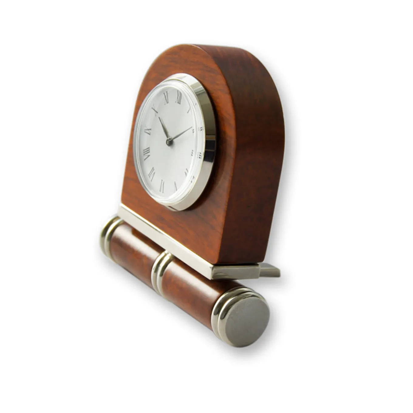 High End Handmade Italian Desk Accessories, Unique Pieces and Limited Production Design. Nino Basso’s creativity is put into the test in a fecound combination of unusual materials and traditional processes. This desk set consist of a visiting card holder, a noteholder, a pens holder with a little clock feauturing a particular line combined with solid hand-turned high class bruyere wood.
