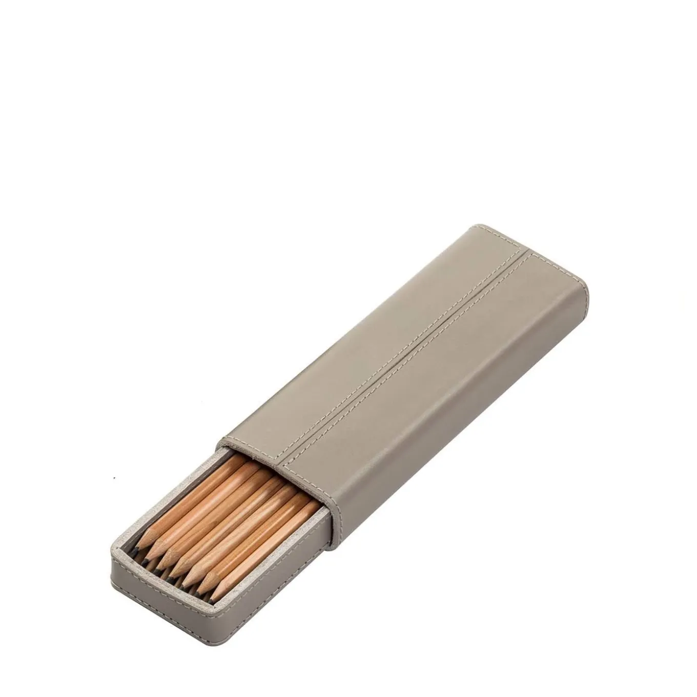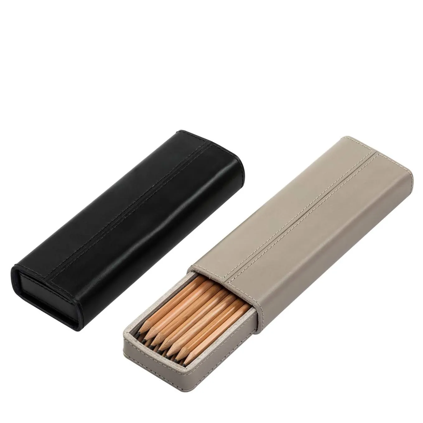Equally stunning on a modern home or office desk or for travel, this precious pencil case is a splendid addition to a fine art lover’s collection. The case contains 12 pencils (included) and is entirely lined in exquisite, water-resistant saddle leather dyed with vegetable pigments in light gray or black. Sophisticated on any occasion, this case is a superb gift for a loved one and can complement other desk items by Rabitti 1969.