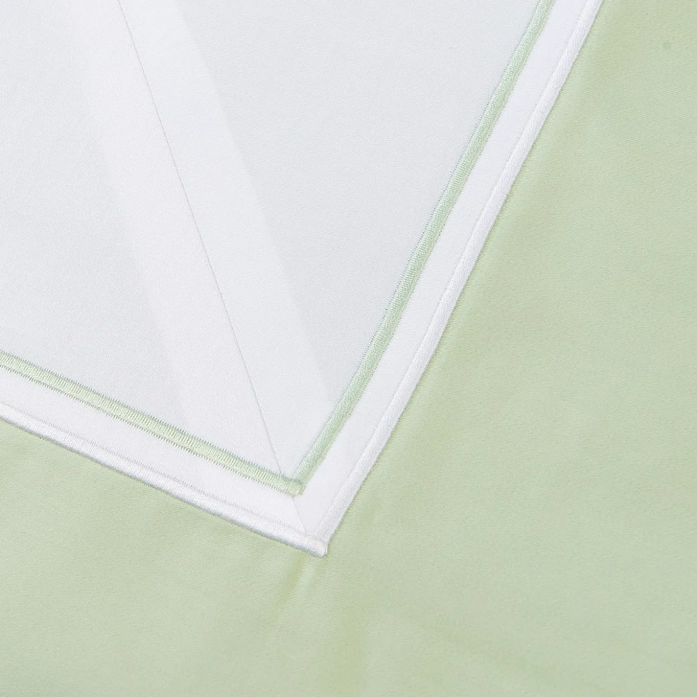 This 265x225cm duvet cover, crafted from 100% cotton with a 300 thread count, features a soothing eucalyptus green hue accented by satin cord and applique details. Combining softness with durability, it elevates the style of any bedroom while ensuring restful nights. The sophisticated design makes it a versatile addition, seamlessly blending with existing decor or complementing the full bedding set.