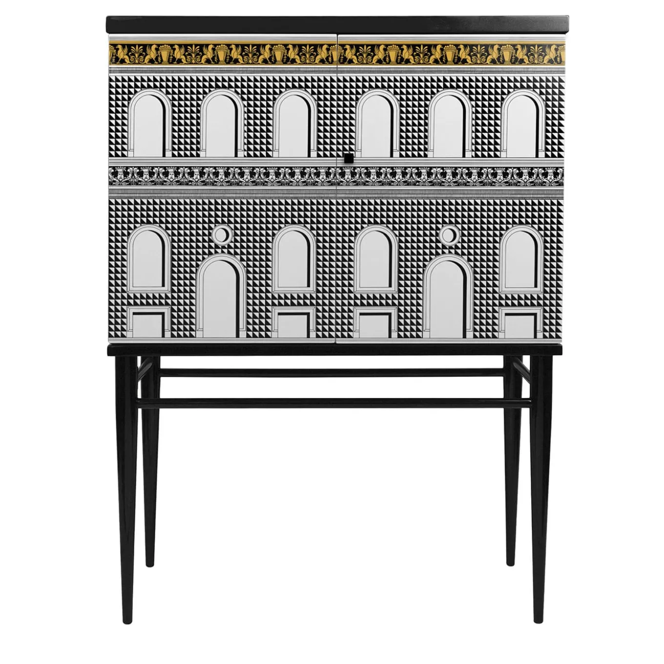 The Fornasetti cabinet is a wooden storage piece of furniture silkscreened and lacquered by hand following the Atelier’s traditional method. The motif evokes the Italian Renaissance according to that metaphorical journey through time undertaken by Fornasetti with its Contemporary Antiquity collection for the Milan Design Week 2021. Each Fornasetti wooden piece of furniture is silkscreened and lacquered by hand and any minor discrepancies between similar creations are the result of craftsmanship.