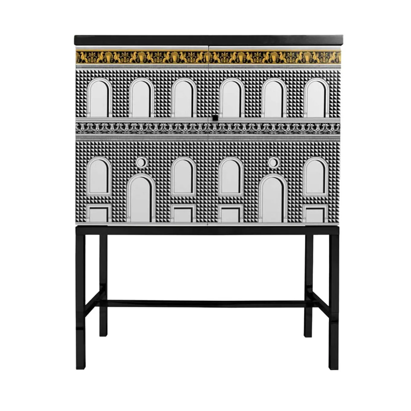 The Fornasetti cabinet is a wooden storage piece of furniture silkscreened and lacquered by hand following the Atelier’s traditional method. The motif evokes the Italian Renaissance according to that metaphorical journey through time undertaken by Fornasetti with its Contemporary Antiquity collection for the Milan Design Week 2021. Each Fornasetti wooden piece of furniture is silkscreened and lacquered by hand and any minor discrepancies between similar creations are the result of craftsmanship.
