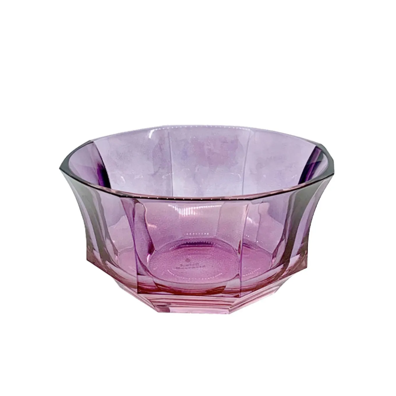 This precious crystal dessert bowl exudes a vibrant feminine personality mainly owed to the daring coloring where pink fades into purple. Emphasized by an iridescent gleam, the design is distinguished by a faceted texture and a shape that progressively flares towards the rim. Please wash only by hand. Only color versions are in the Artemest catalog.