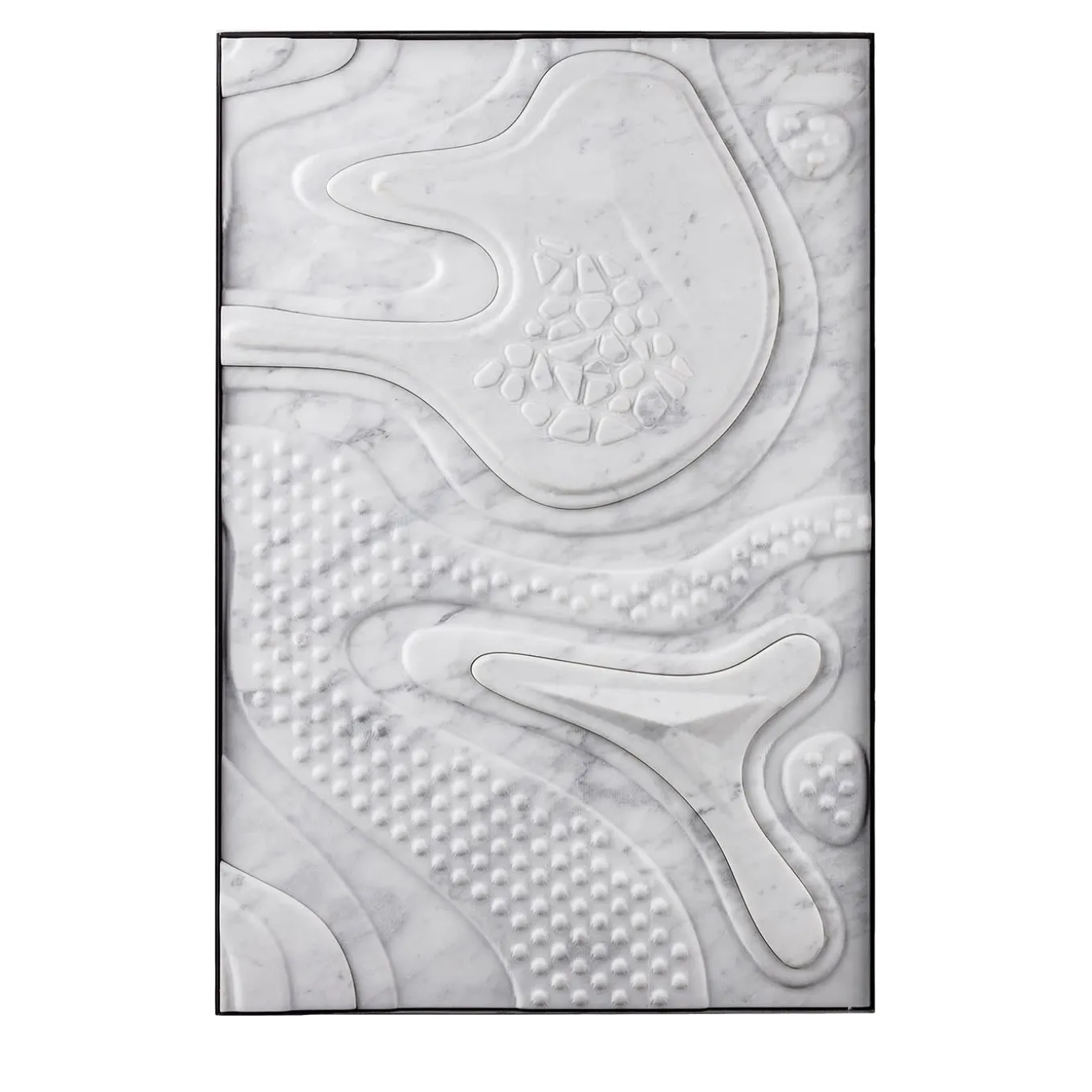 Favare in white Carrara marble is part of an exclusive stone artwork collection, showcasing surfaces developed over time. It reflects the vision of designers like Michele De Lucchi, Marella Ferrera, and Marco Piva, transforming textures and geometries into true masterpieces. Framed in matte black metal, it is easy to mount and suits any space. A tribute to Lithea’s craftsmanship, it blends tradition and innovation. Frame included.