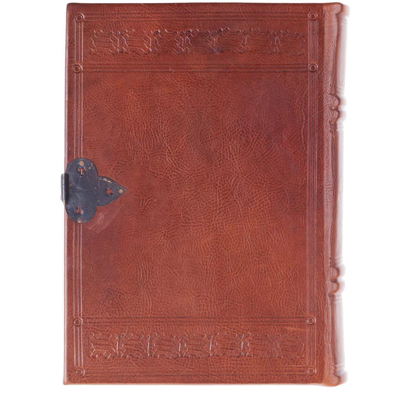 This book by Florentine bookbinder Giannini is covered with dark leather, a hue achieved using the ancient technique of vegetable tanning. The hand-sewn interior contains ivory paper, and the monastic style cover features a uniquely crafted brass fastening clasp.