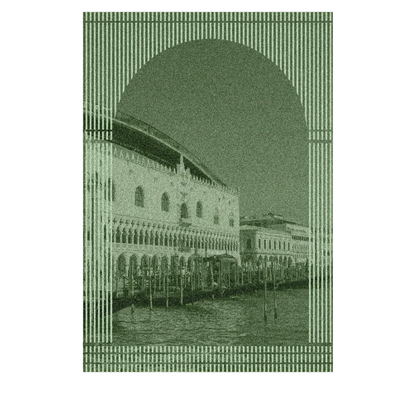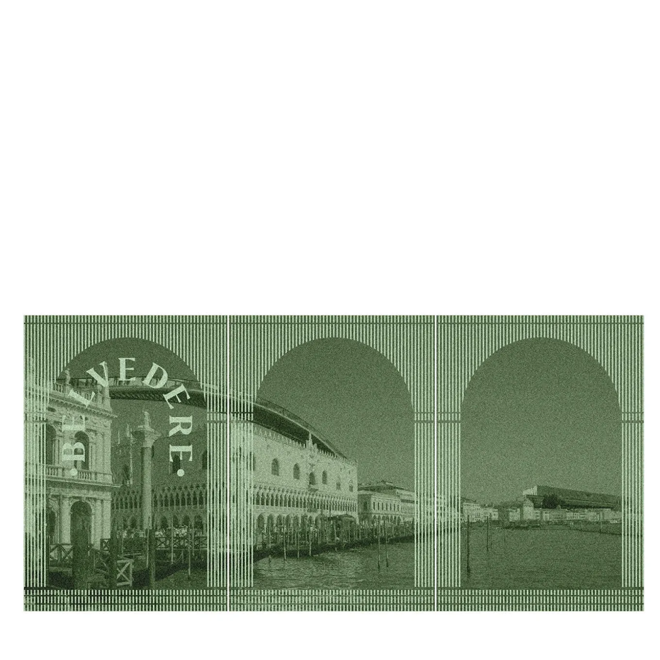 Part of a textile triptych with a dual function – blanket and tapestry, with each city displayed as a landscape seen from triforce belonging to different architectural styles. Jacquard-weave twith with piquè technique. 100% extra fine merino wool. 19.5 Microns.