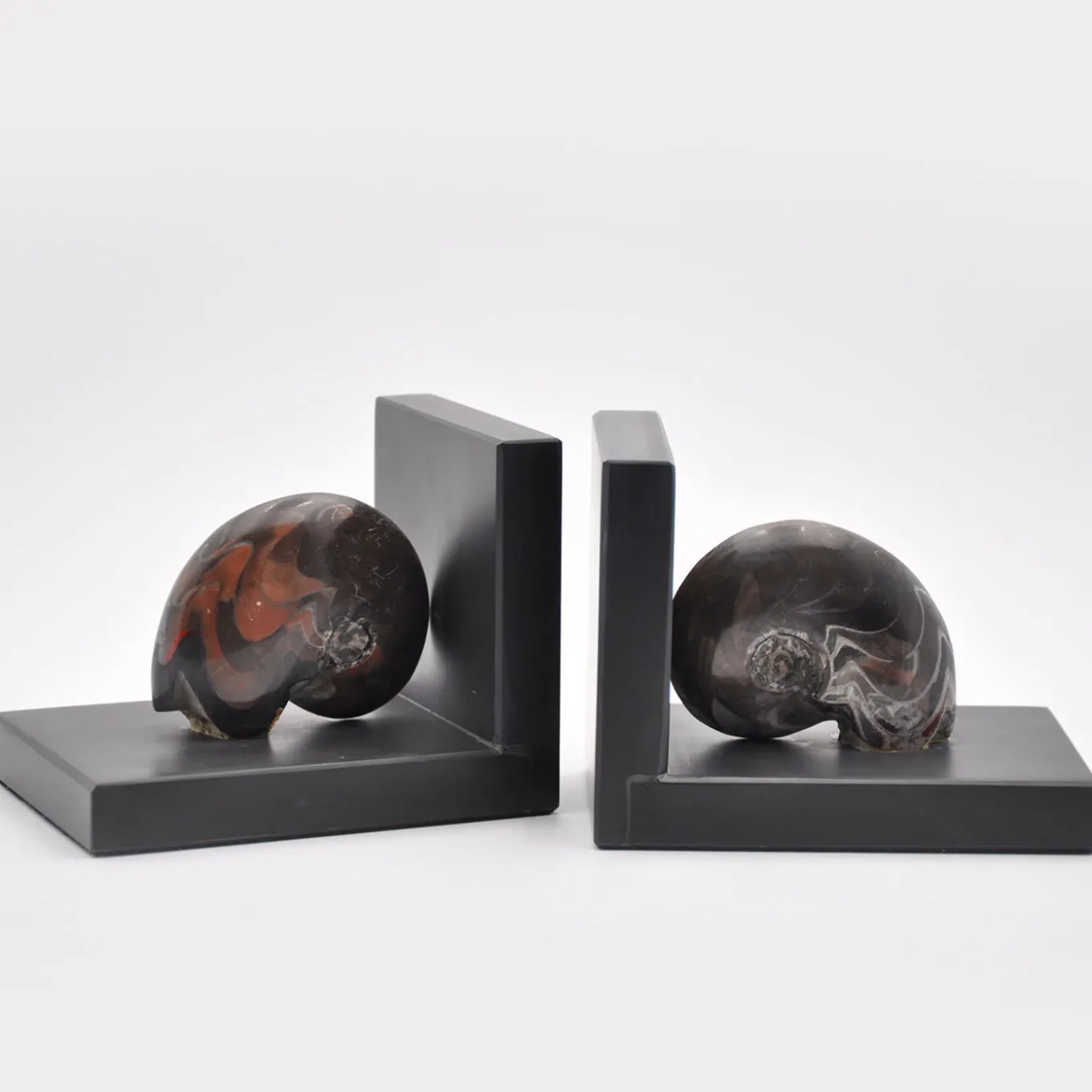 An authentic, aesthetic and decorative piece which looks its age and speaks of the prehistoric past. It would look great on any library shelf or on a side table, lit by a lamp, in your home. It is truly unique because the natural form and the decorative colors of each Ammonite fossil shell are never the same.