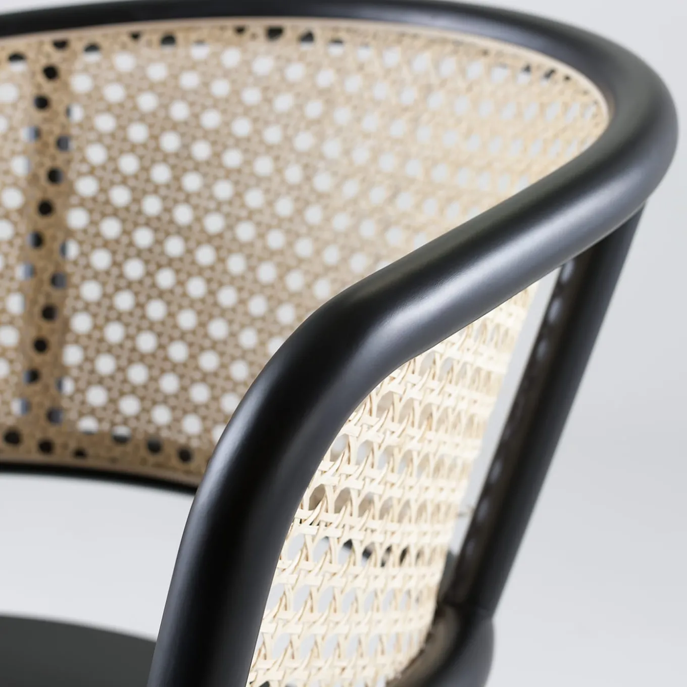 Frantz 881 is a bent beechwood chair with a plywood seat and a backrest covered in Indian cane.