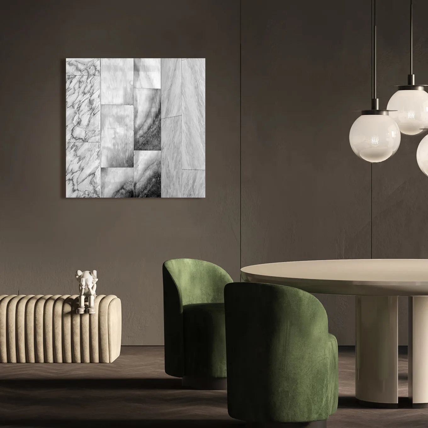 A close-up of different marble types making up the walls of the historical Milan building Galleria Passerella 2 becomes an extraordinary interplay of textures and geometries in this black and white photograph by Giulio Boem. A tribute to Gio Ponti, the building was designed by the renowned architect in collaboration with Antonio Fornaroli and the Soncini brothers in 1950. This is a limited edition of n. 10. Delivered with a certificate of authenticity. Frame not included. This item is currently on display at in NY.