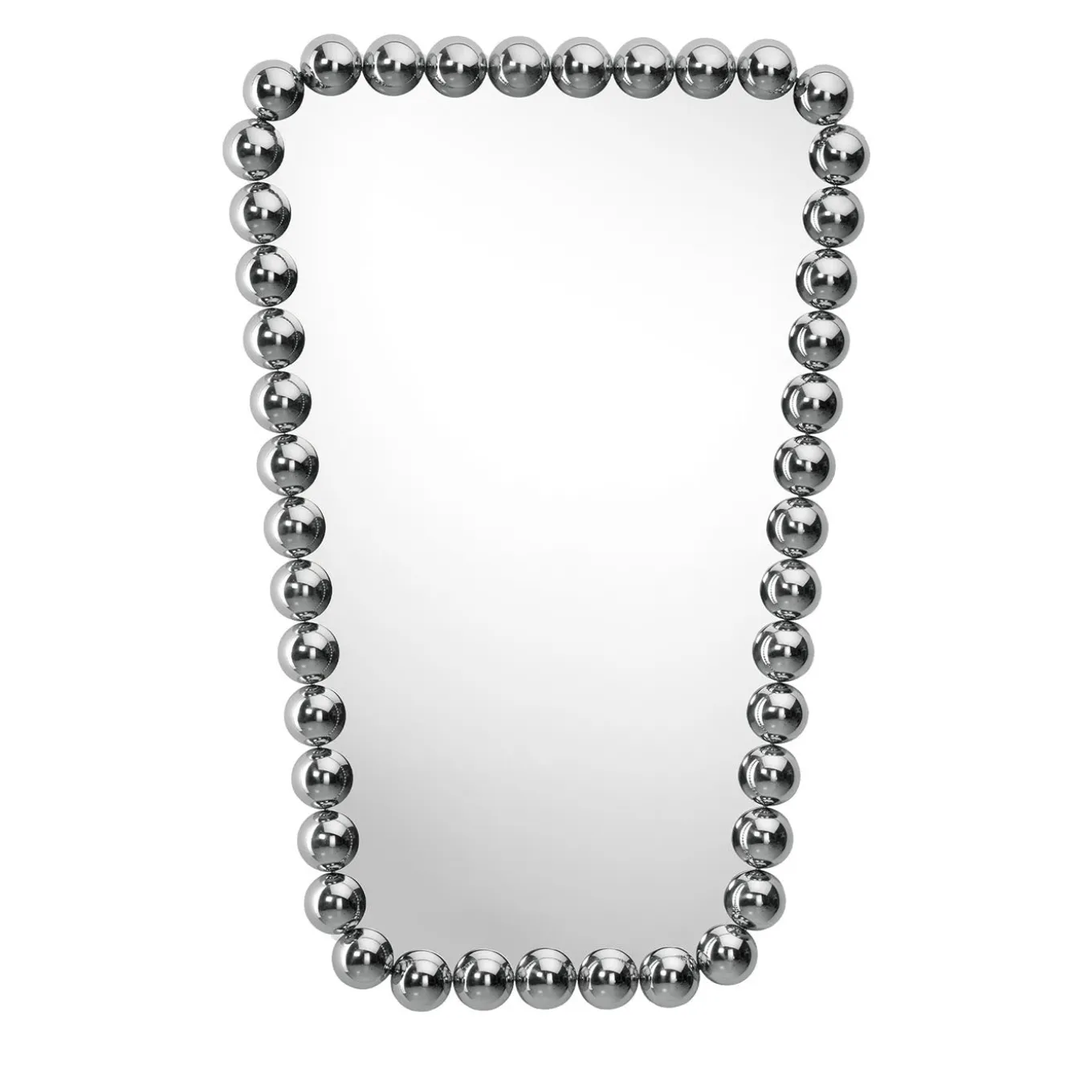 A stupendous frame of chromed brass pearls encloses the luminous surface of this mirror, enhancing its singular and contemporary character. An extraordinary design by Nika Zupanc, it will take center stage in an interior setting of contemporary aesthetic. Also available in bronze and black as well as other shapes, please consult the Artemest catalog for options.