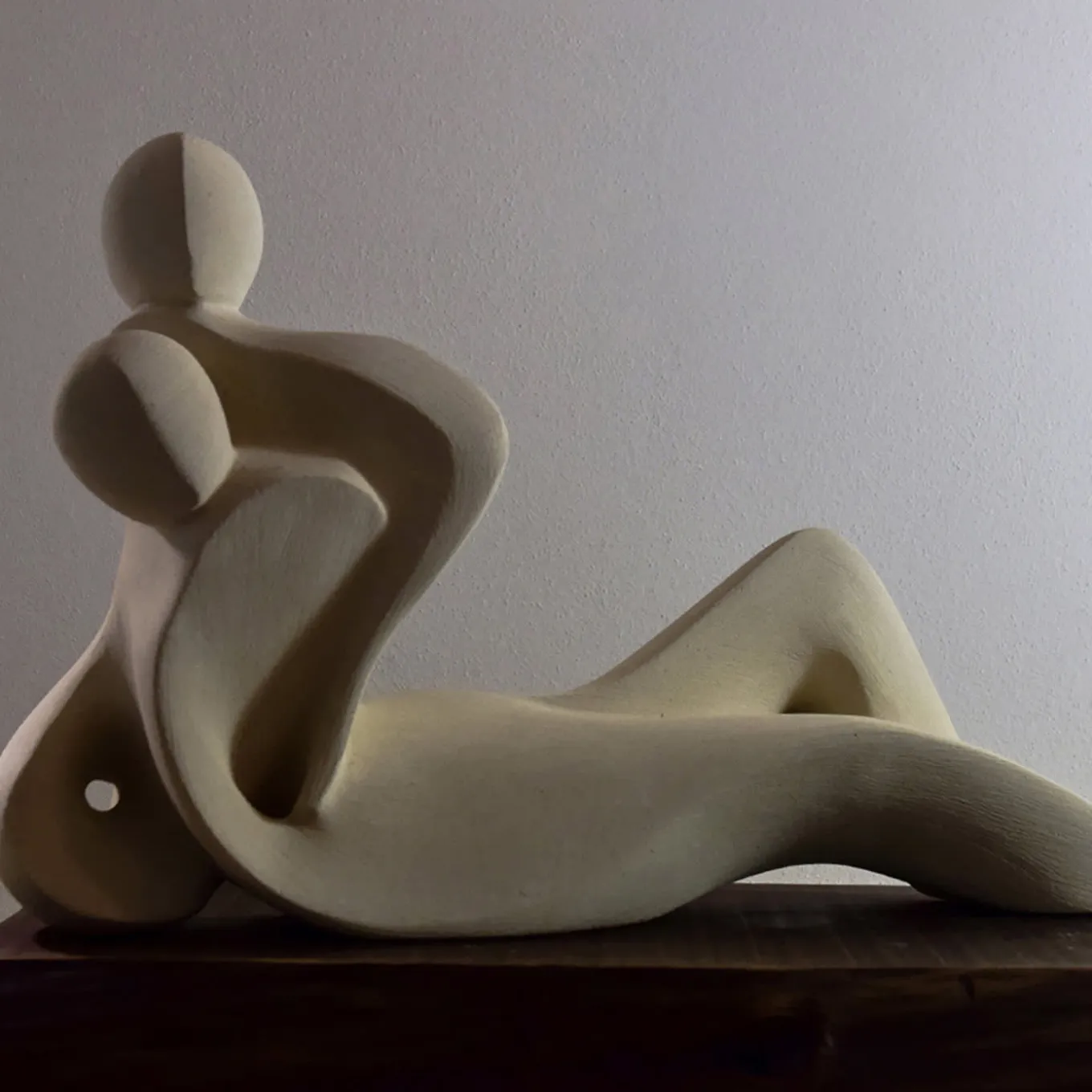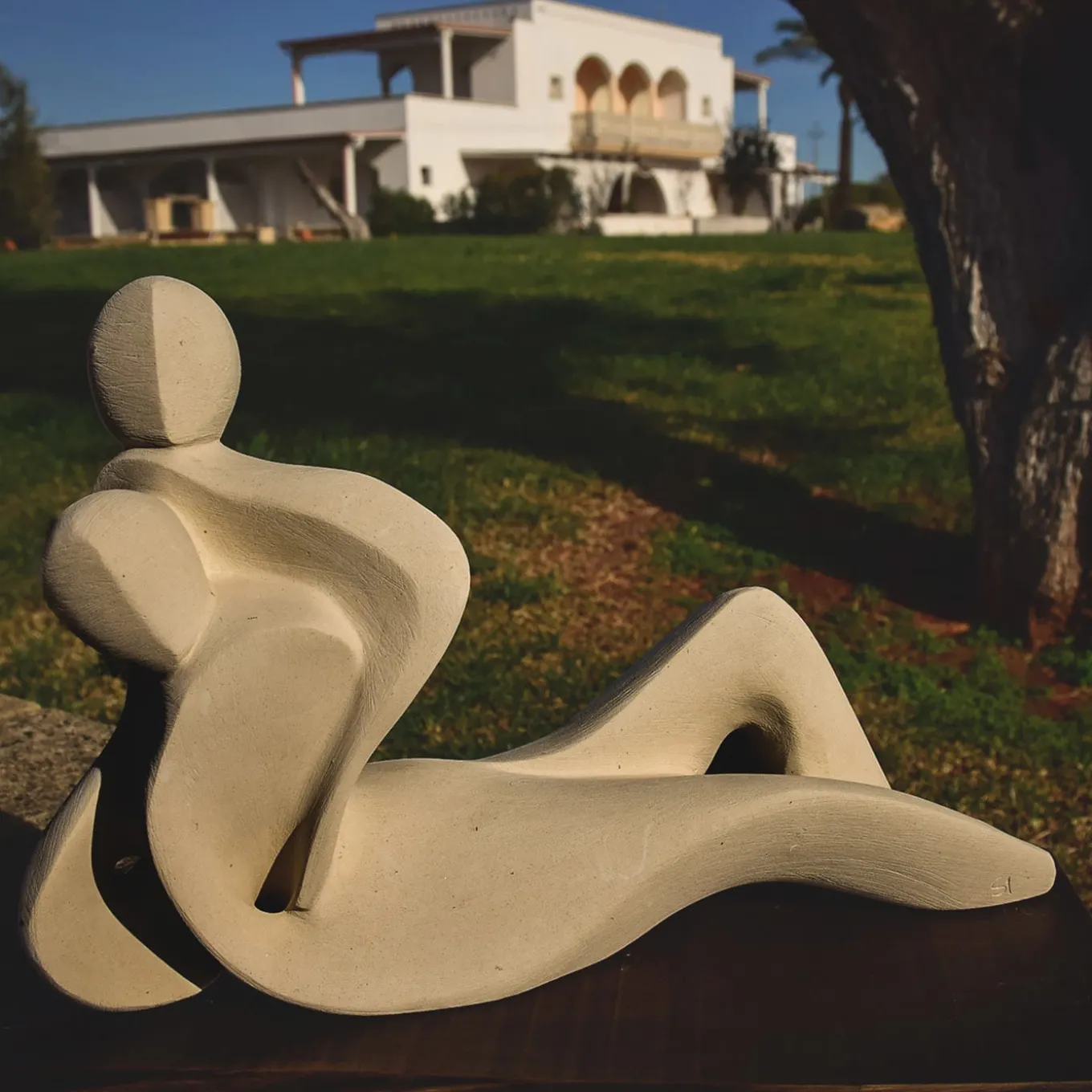 Stylized anthropomorphic shapes define this sublime sculpture, minutely handcrafted of precious marine-origin stone rich in animal and plant fossils exclusively quarried near Lecce, Apulia. The two bodies seem as frozen in a moment of overwhelming joy – hence “giubilo”. The piece is numbered and signed by the artist.