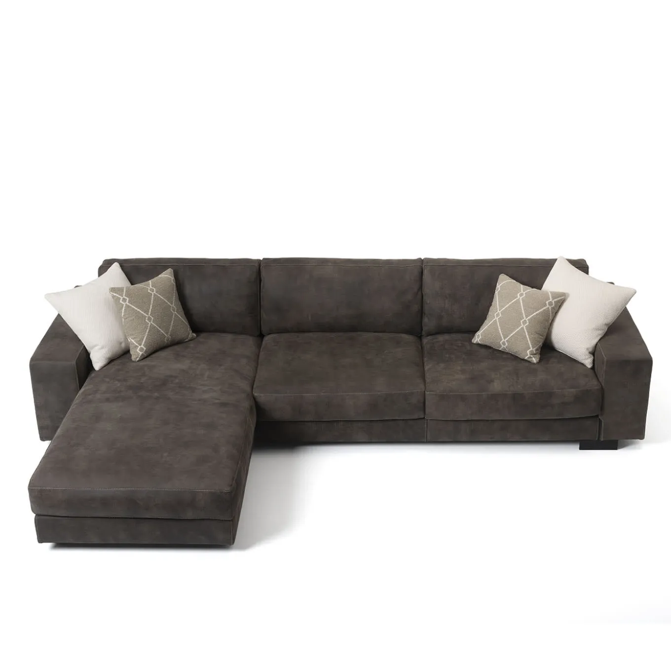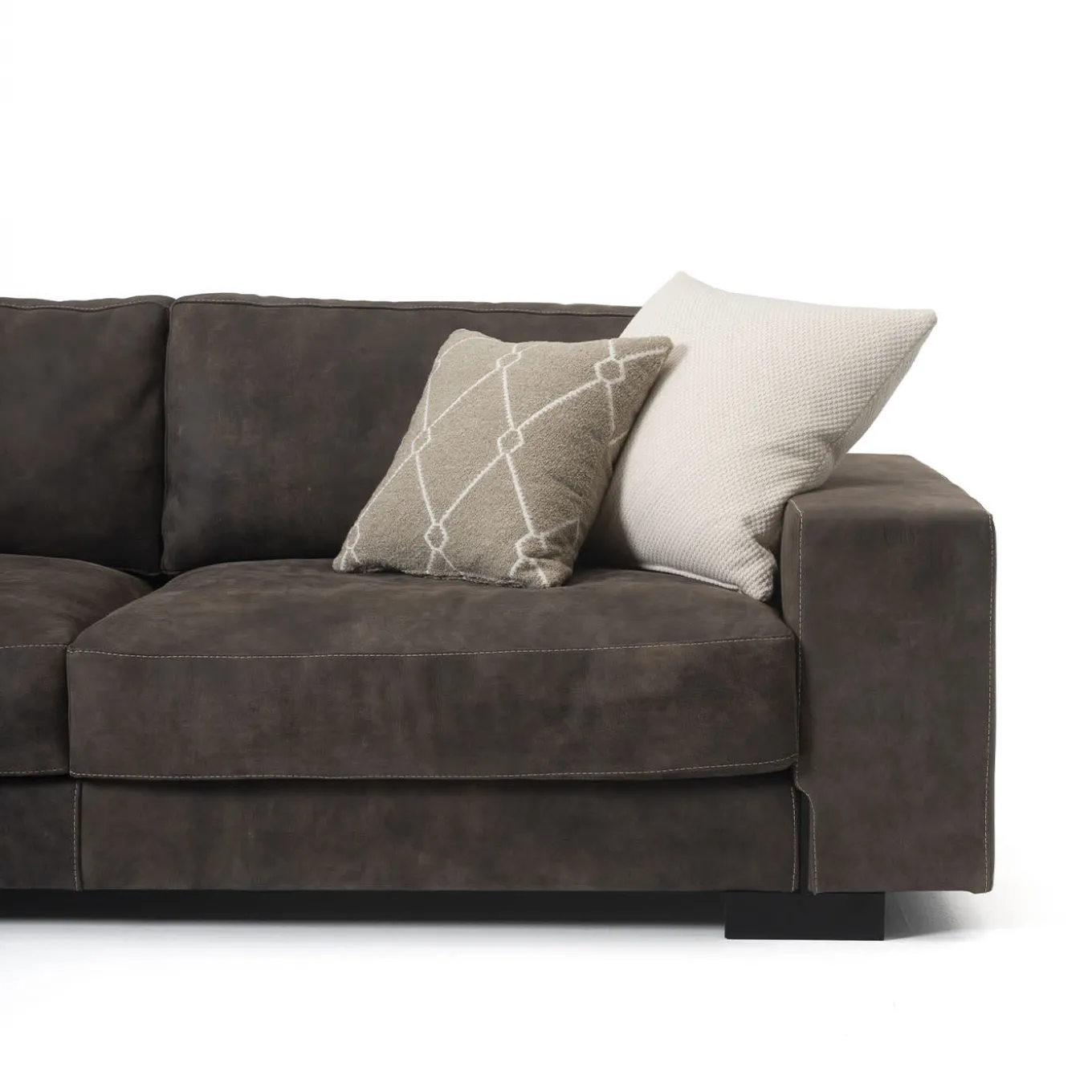 The You Glam sofa is the epitome of a contemporary modular sofa, allowing endless configurations in size and design. It features a geometric frame with soft cushions made of double-density polyurethane and a goose-down duvet. An optional headrest adds neck support. The metal legs, customizable with Mantellassi finishes, give it a light appearance despite its size. Decorative cushions not included.