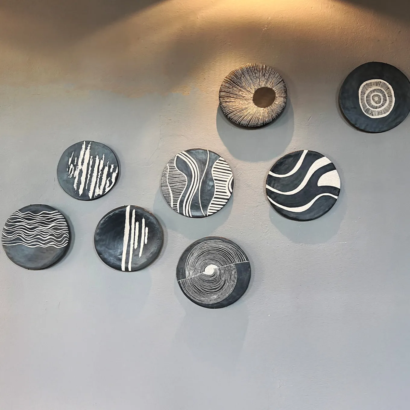 Flowing, wave-like engravings ripple across the surface of this handmade ceramic plate, creating a sense of movement and depth. The dynamic black-and-white contrast is enhanced by the hand-incised texture, making each piece one of a kind. Ideal as a wall-hung artwork or a tabletop accent, it embodies modern artistry and traditional craftsmanship in a timeless, versatile form.
