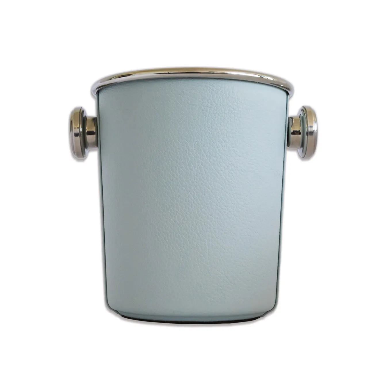 A refined piece of functional decor to showcase during a special gathering set in a contemporary style, this exquisite champagne ice cooler is distinguished by a fascinating light blue shade juxtaposed to a polished metal finish. Fashioned of stainless steel and covered in full-grain leather in a delicate, pale-blue hue. Available in 13 other colors, please check the Artemest catalog for details.