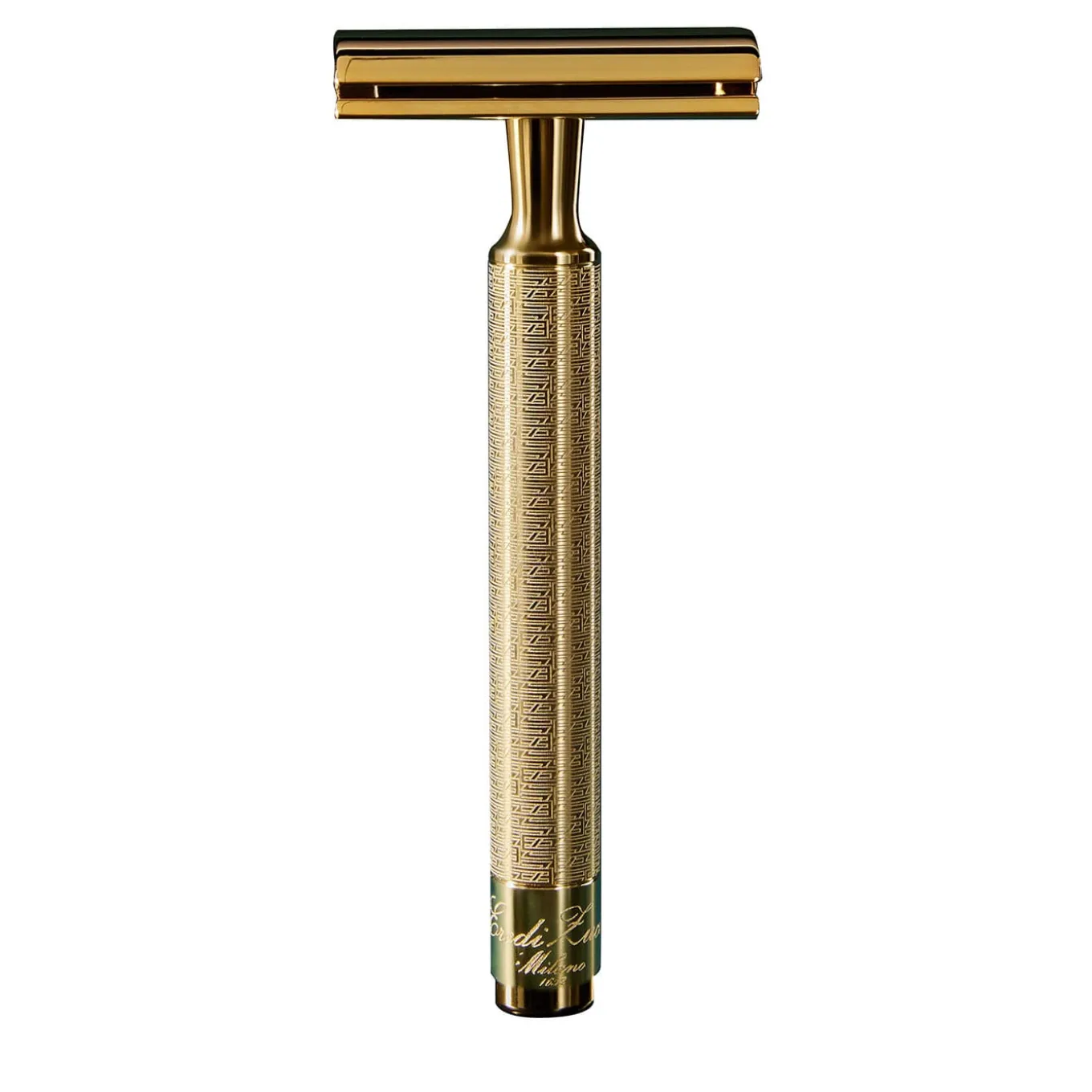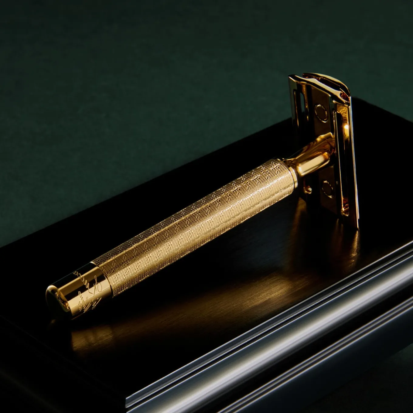 Distinguished by a sophisticated Eredi Zucca monogram motif engraved on the handle, this safety razor is an elegant yet timeless tool, perfect for anyone dipping their toes into the world of traditional shaving for the first time. Both the zamak upper plate and comb head and brass handle are elevated with a gold-plated chrome finish, protecting the razor from corrosion and distributing its weight evenly for enhanced comfort: an exceptional design with meticulous attention to detail.