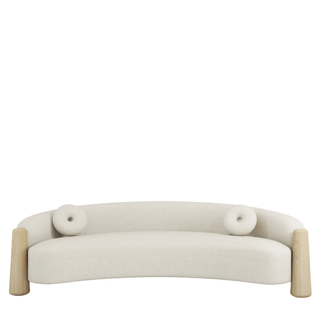 The Golfo White Curved Sofa embodies the perfect blend of elegance and comfort, drawing inspiration from the breathtaking beauty of the Gulf of Naples. This modern, minimalist sofa features a striking curved design that mimics the soft contours of coastlines, making it a captivating addition to any space. The light oak structure seamlessly complements the luxurious white upholstery, providing a soft and inviting atmosphere ideal for relaxation. Integrated and padded armrests deliver exceptional support, enhancing the cozy experience. Included two large cylindrical cushions, upholstered in the same fabric as the sofa, further enrich its harmonious aesthetic. Each piece is crafted with attention to detail, ensuring uniqueness and artisanal quality. Perfect for those who appreciate modern design inspired by nature. COM available, contact the Concierge for more details.
