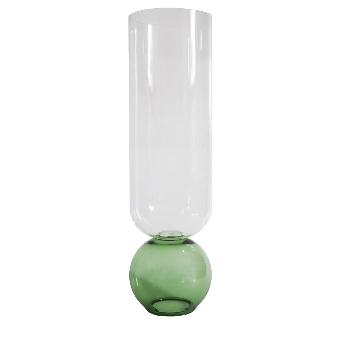 In this alluring vase, the lightness of prized clear crystal meets the sleekness of contemporary designs. A spherical green base with a slightly flattened bottom supports the cylindrical body in clear crystal delicately poised above, delivering a sense of ethereal grace and balance that makes this vase a superb solution to be displayed also as a simple decorative piece.