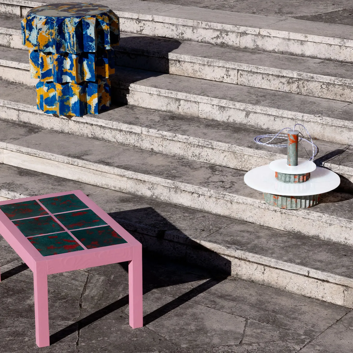 The Guarino lamp showcases a unique blend of craftsmanship and sustainability through its innovative composite material. Composed of rabbit glue, color pigments, plaster, and recycled paper, this pendant lamp presents a textured, sculptural form with vibrant green and orange hues. Designed to enhance interiors with a dynamic, artistic presence, it is made to order in Rome with options for custom sizes and finishes available upon inquiry. Contact the Concierge for more details.