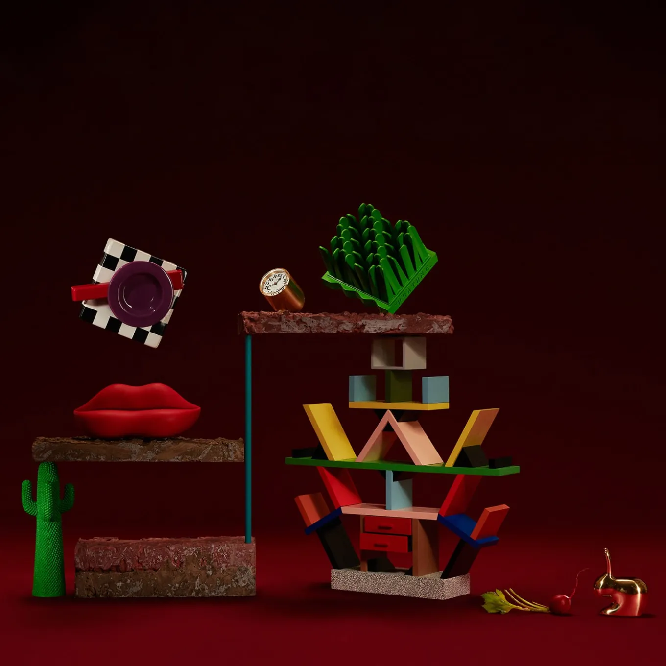 Gufram icons have become smaller and have turned into Guframinis! Designed in a 1:8 scale the new miniatures perfectly reproduce the famous original sculptures. Each “mini” creation is made of polyurethane foam which is injected into the mold which has previously been painted so to get, through a state-of-the-art method, a unique piece that is identical to the original one: the same softness, same colors and same details. Each Guframinis is then finished by hand, every piece is one-of-a-kind.