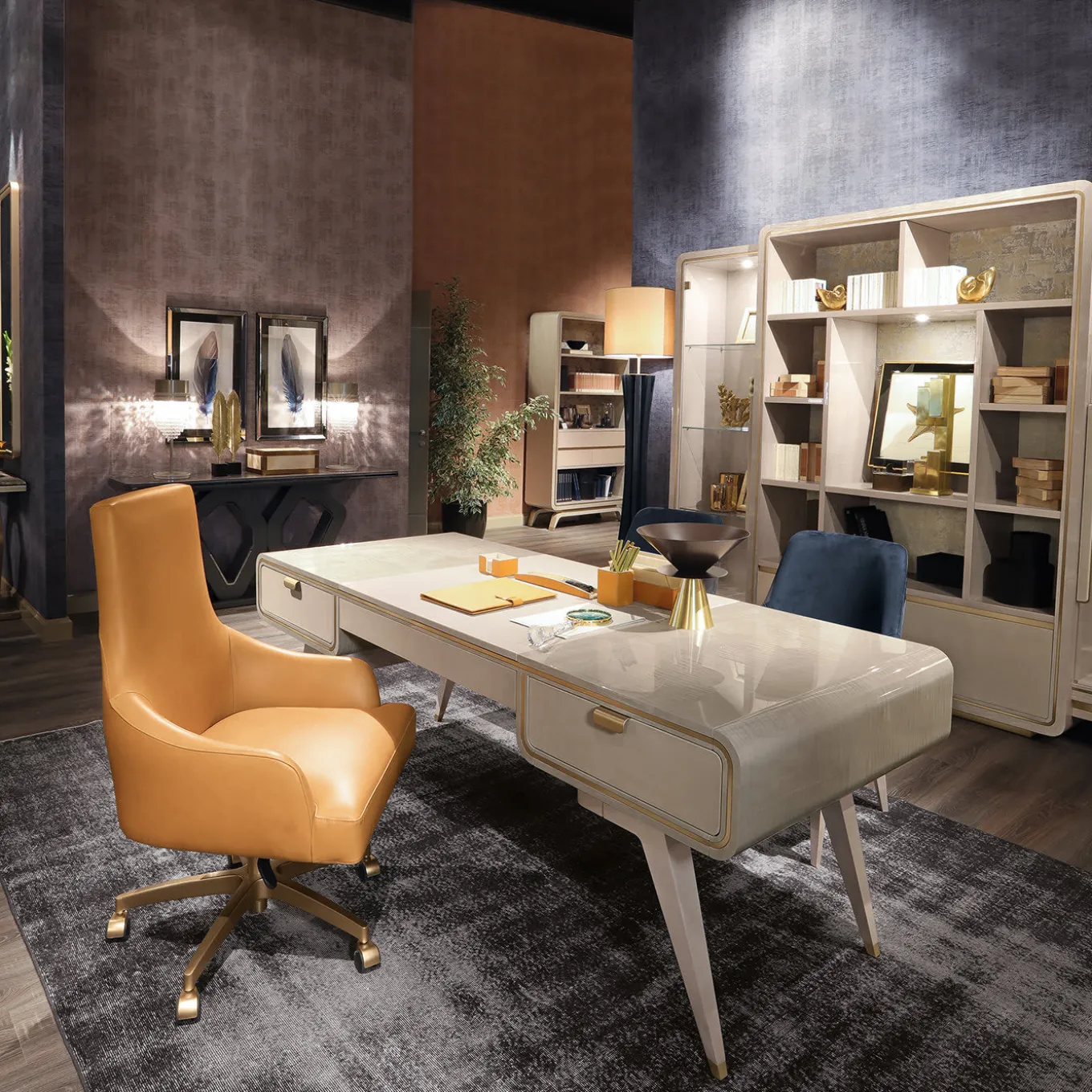Spend the home office days in total luxury with the Hanami Urban Chic Office Armchair. On a metal base, shown here with a satin gold finish, the office chair is built on a wooden frame and upholstered in the material of your choice. The chair comes from a full collection of contemporary home furnishings.