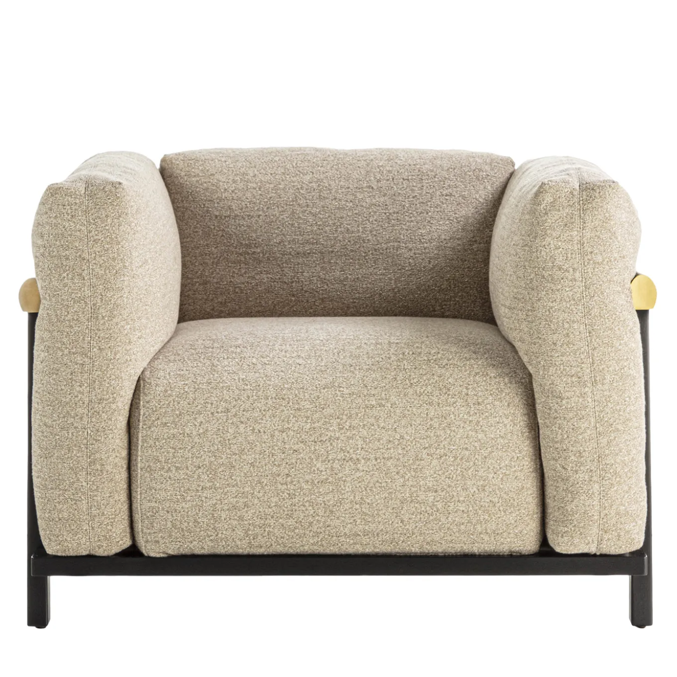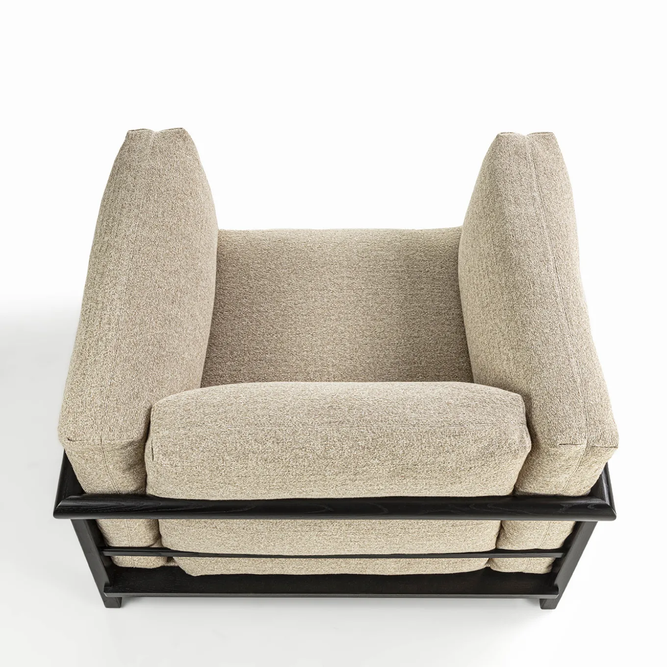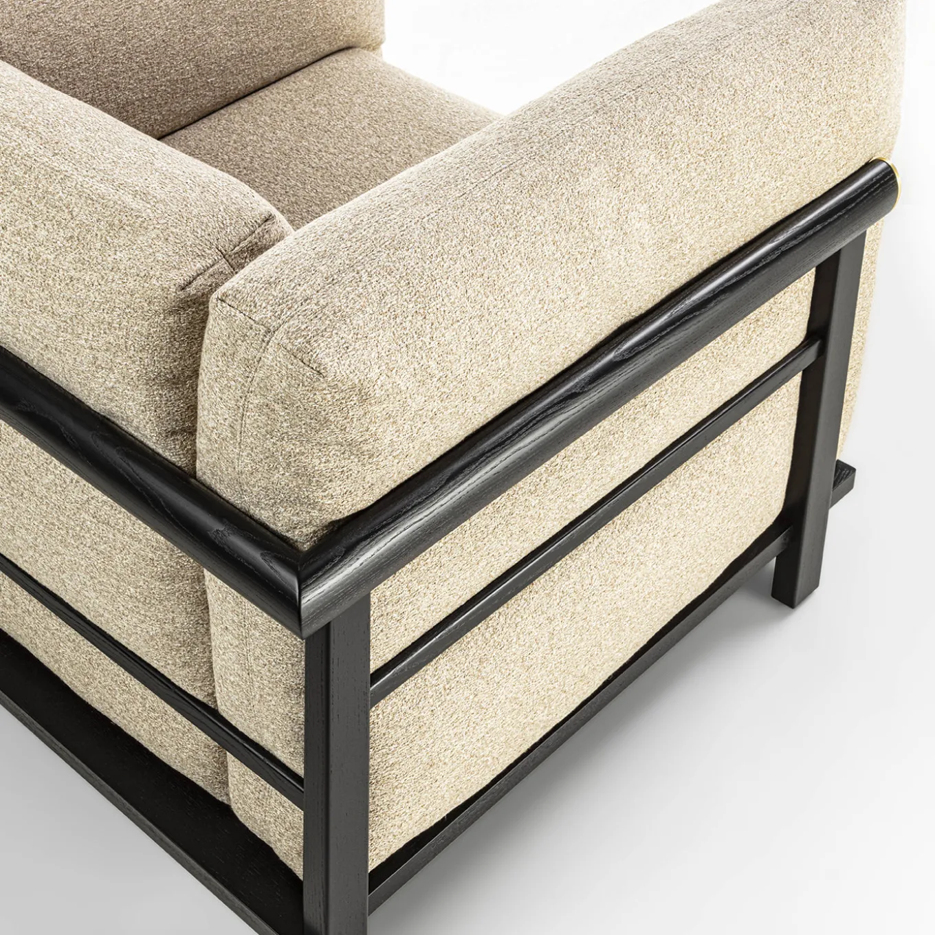 The Heiko armchair features clean, precise lines in its solid wood frame, harmoniously blending with the softness of its inviting cushions. This harmonious interplay of lines and materials creates a well-defined and cozy space for relaxation. The intricate joinery and impeccable wood craftsmanship make the Heiko armchair a statement piece that enhances any environment with its elegant and timeless presence.