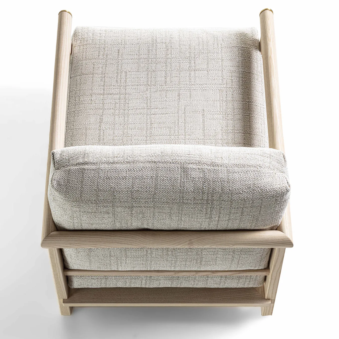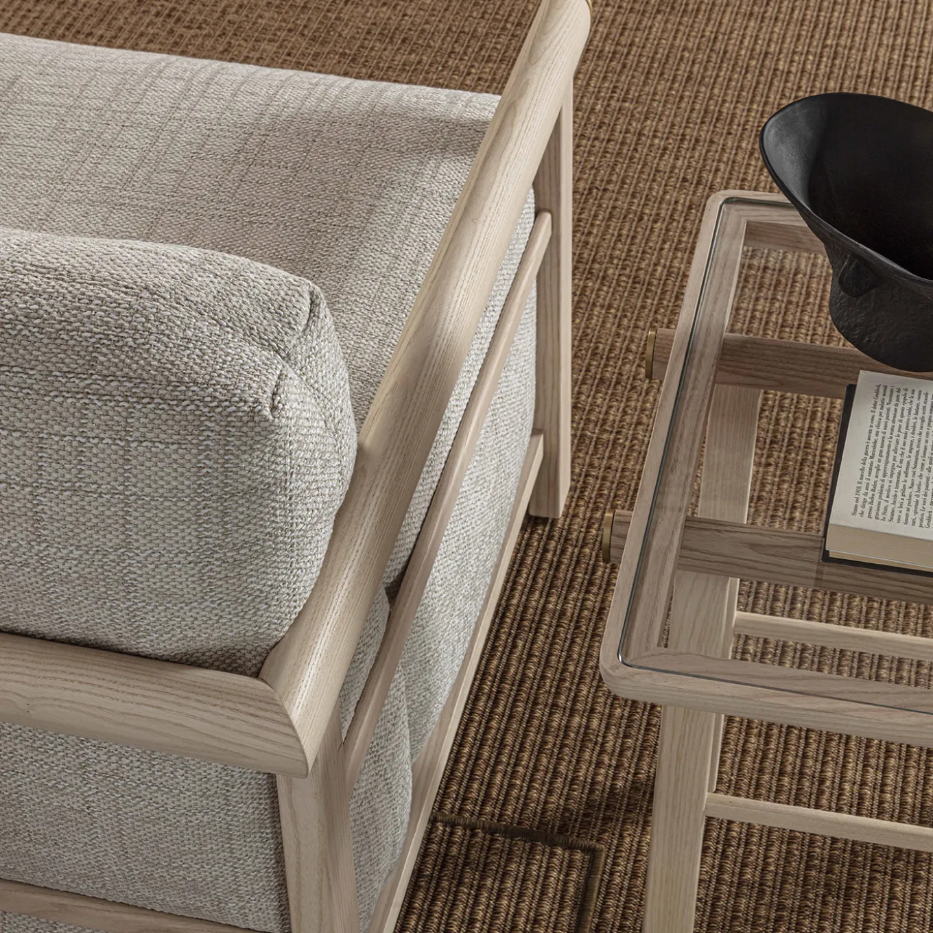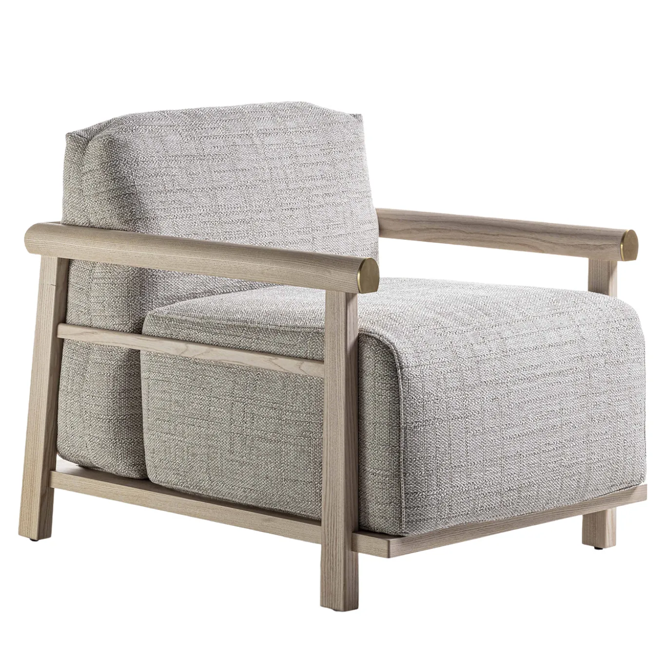 The Heiko lounge chair features clean, precise lines in its solid wood frame, harmoniously blending with the softness of its inviting cushions. This harmonious interplay of lines and materials creates a well-defined and cozy space for relaxation. The intricate joinery and impeccable wood craftsmanship make the Heiko armchair a statement piece that enhances any environment with its elegant and timeless presence.