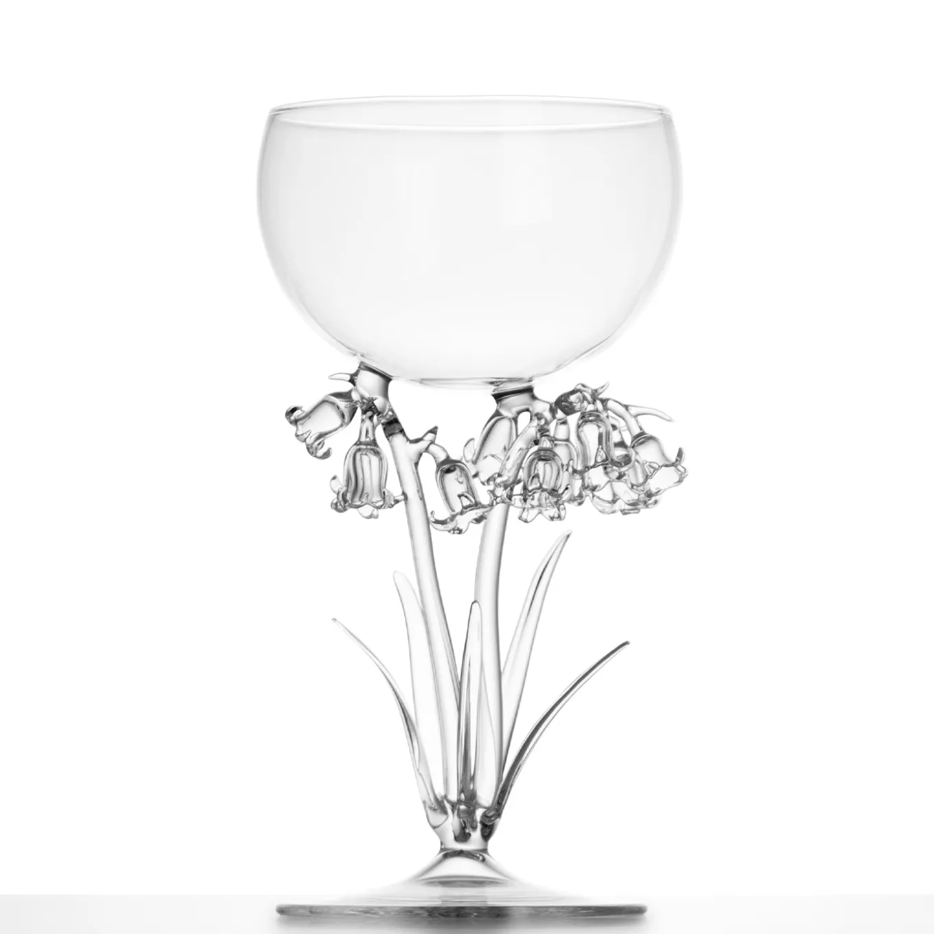 This glass belongs to a collection of 21 unique pieces, each inspired by a different botanical species and reimagined by Simone Crestani from archival Fratelli Toso drawings. Shaped in transparent glass through the flame of the lamp, it evokes a secret garden where petals, stems, and leaves come to life. Each glass is one of a kind — an object that is both functional and artistic, solid and fragile, intimate and universal. Like a flower in bloom, it invites us to contemplate its beauty or raise a toast to the inner garden we all carry within.