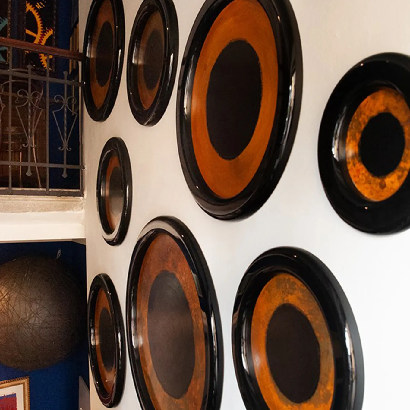 Hypnosis is an original modular work in iron and wood available in 4 sizes designed to decorate large or small environments. The frames is in wood, while the central eye is an oxidized iron plate where the unique oxidation process makes the iron bright orange, providing fantastic contrast and ensures that each element is different from any other.